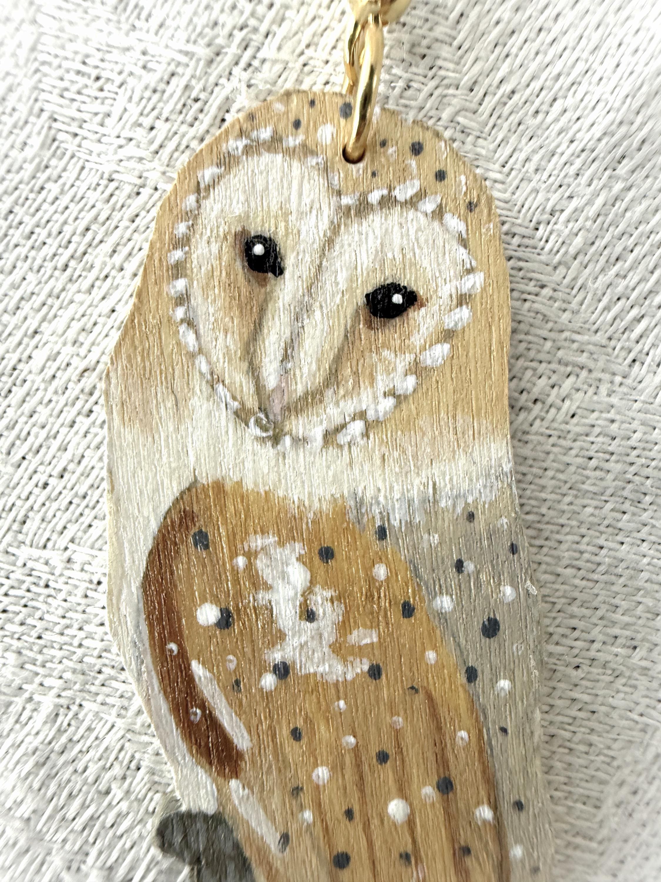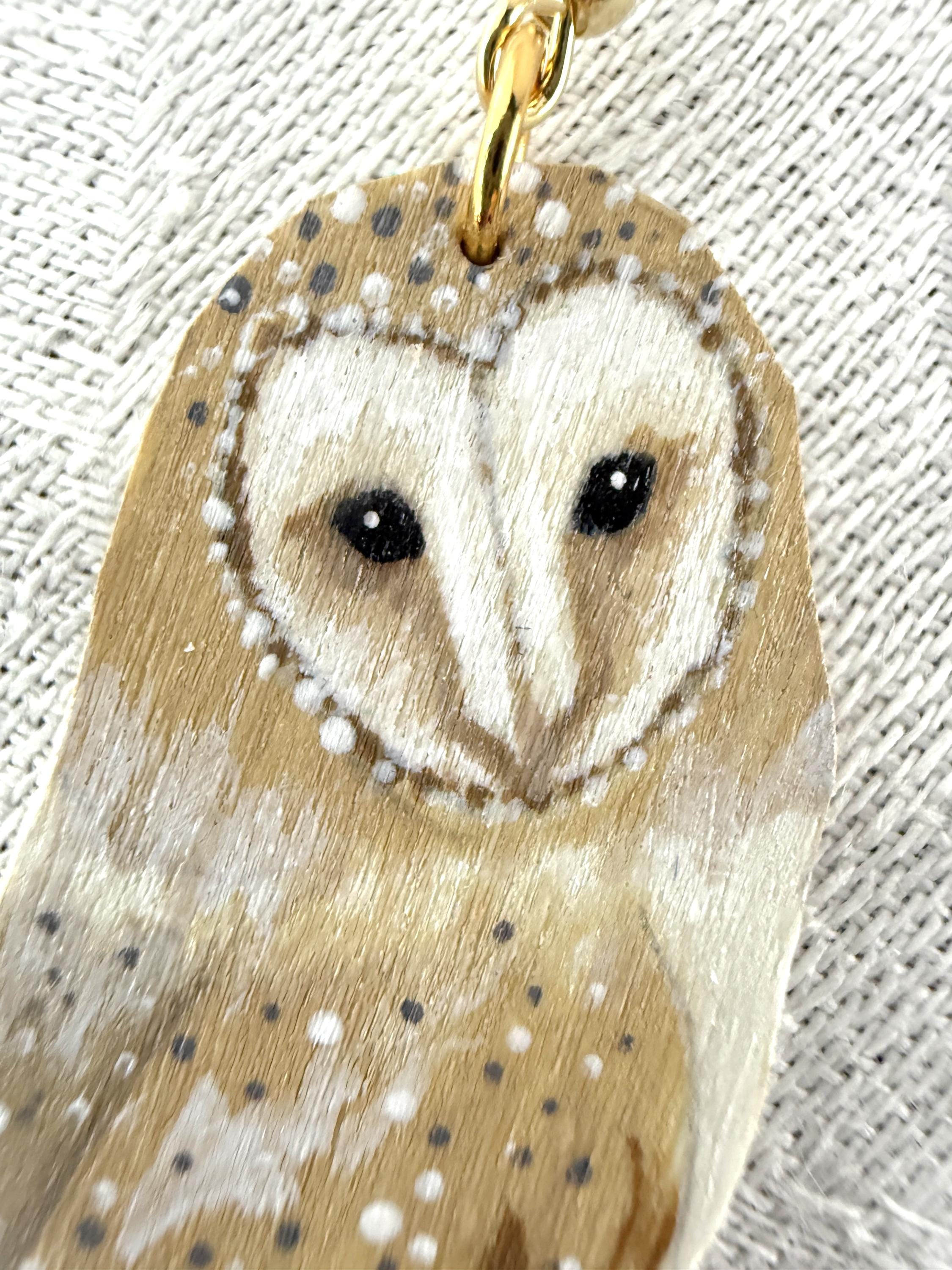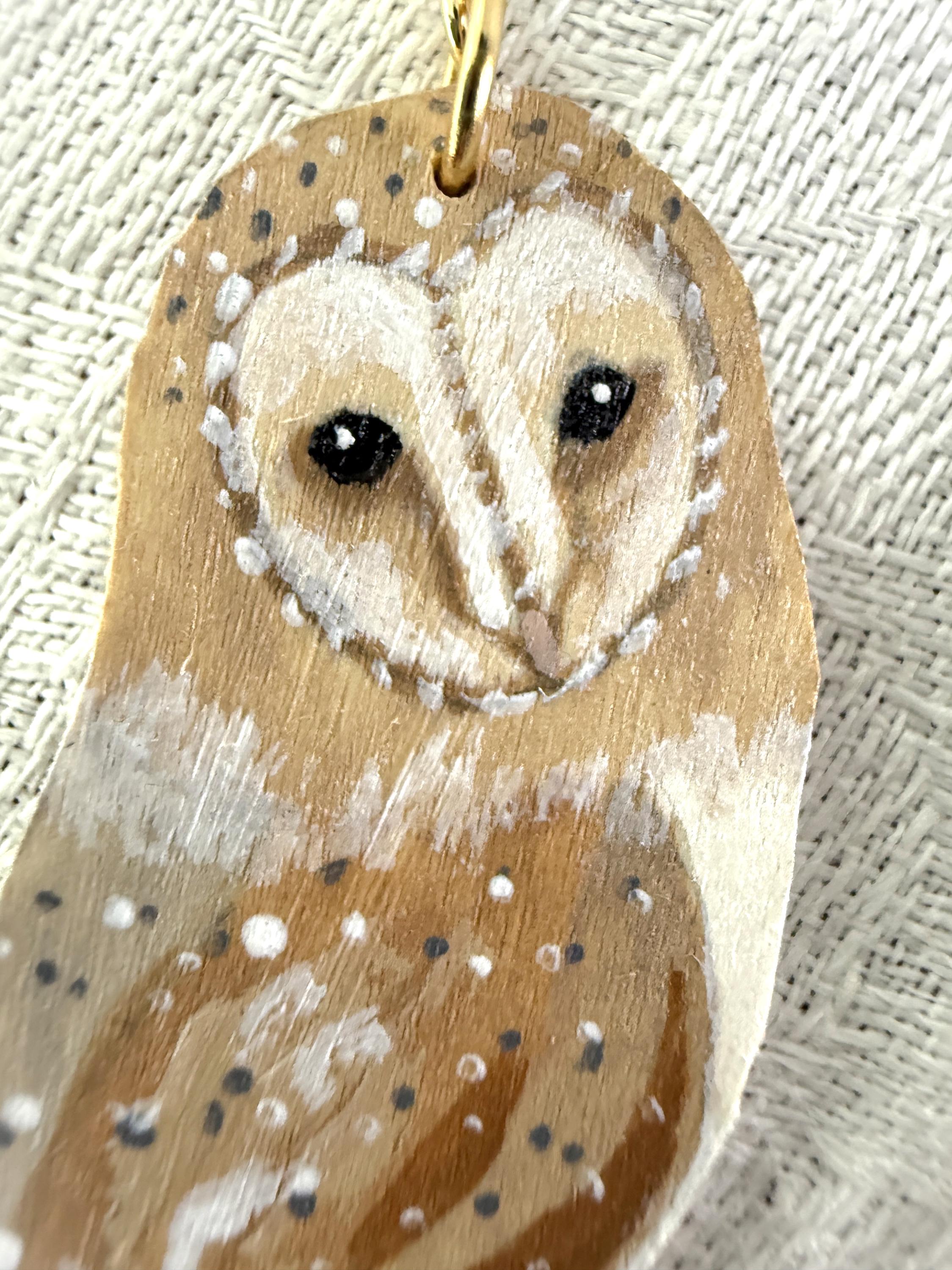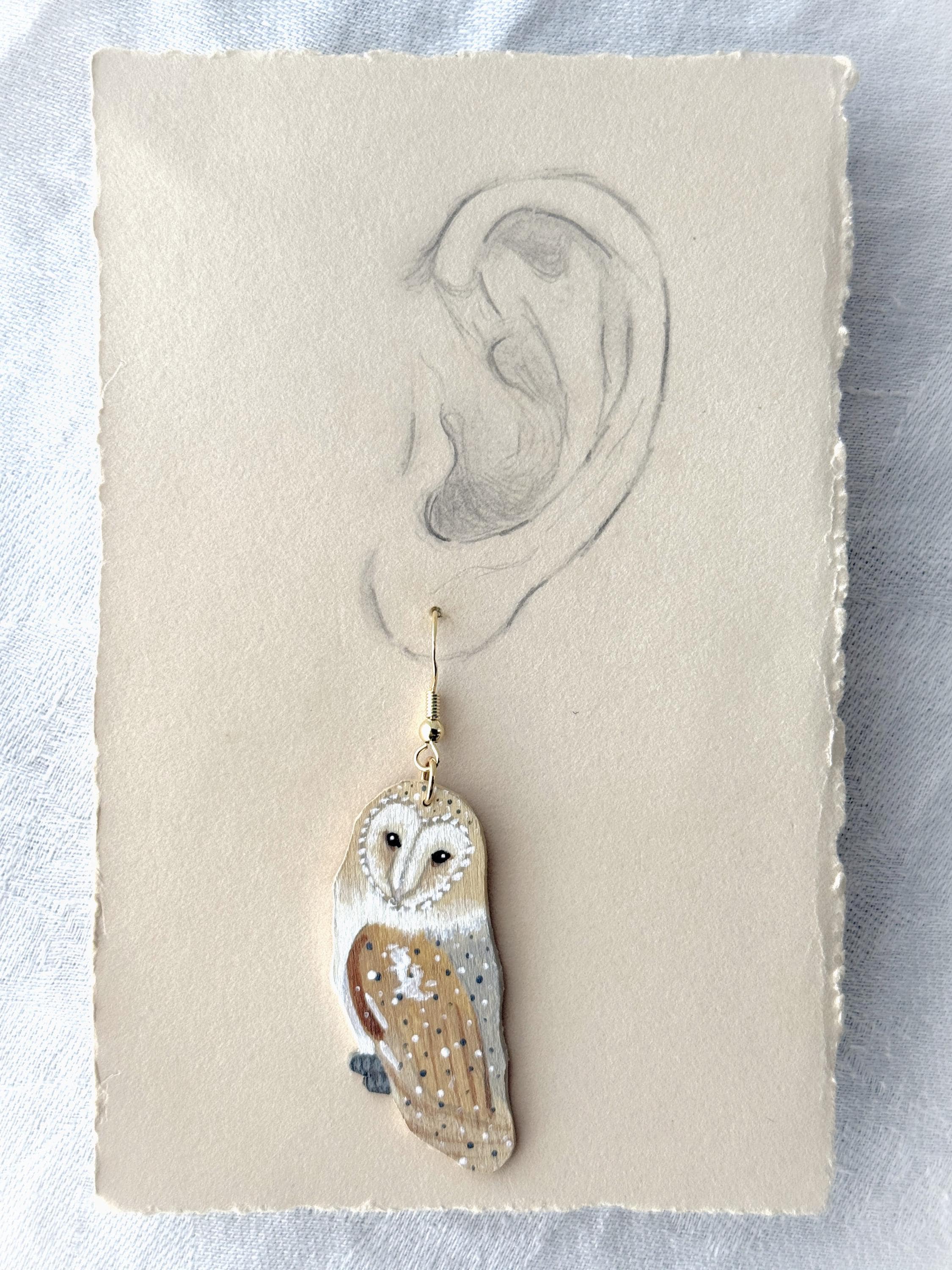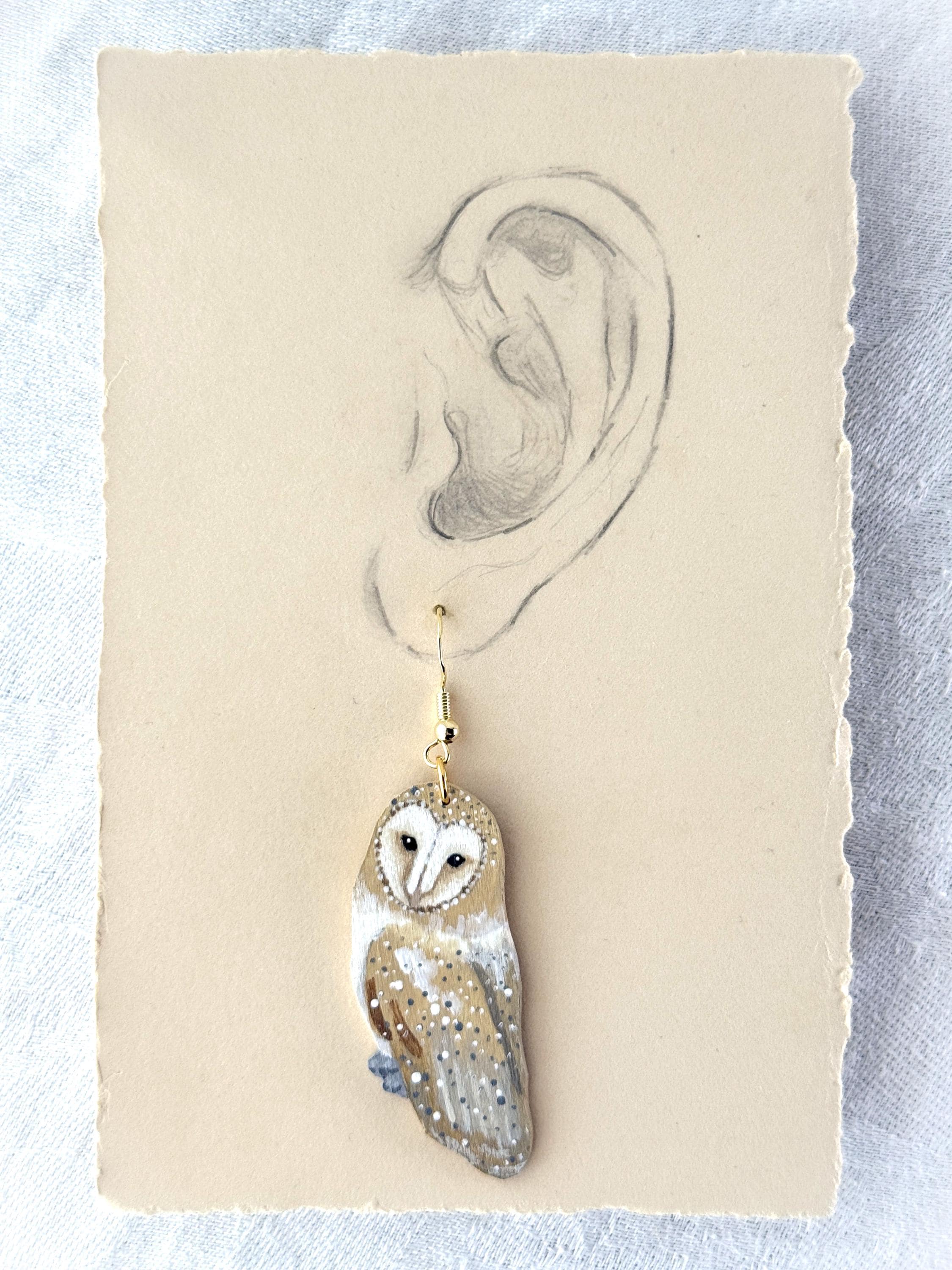 Such a talented artist! These earrings are so pretty, and the owls are so delicately painted. My only critique is that I wish the backs were painted, too. Dangling earrings always shift around, and it irks me when the unfinished side flips front. I would have liked to see the back with a whitewash or the pretty speckled pattern of the owl's wings. But I knew what I was getting, as I wrote the seller and she responded right away. Very pleased with my purchase, and the shipping was prompt and packaging beautifully presented.