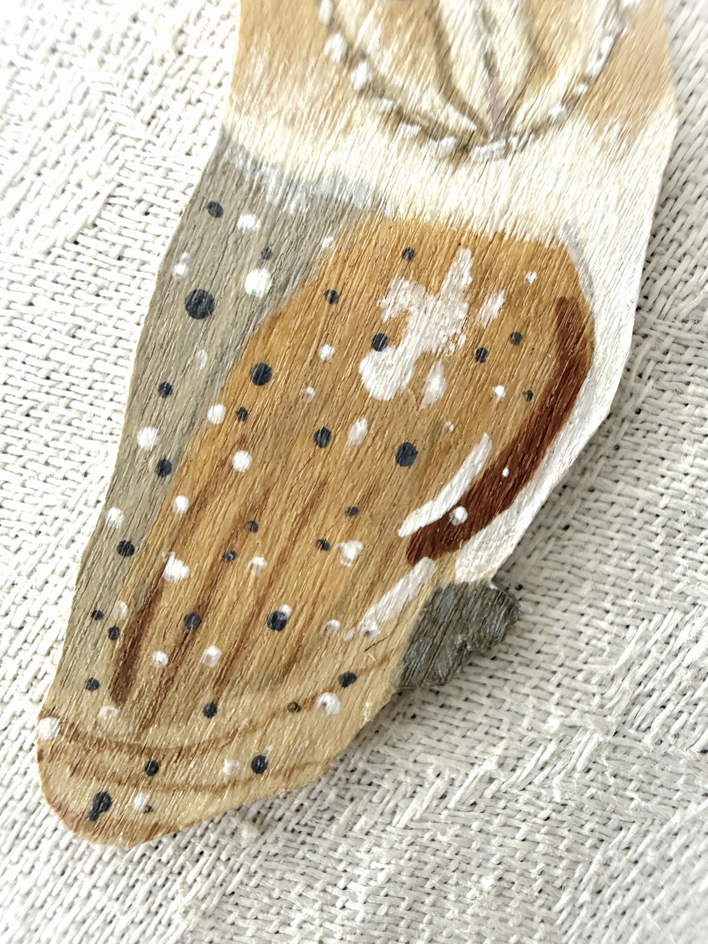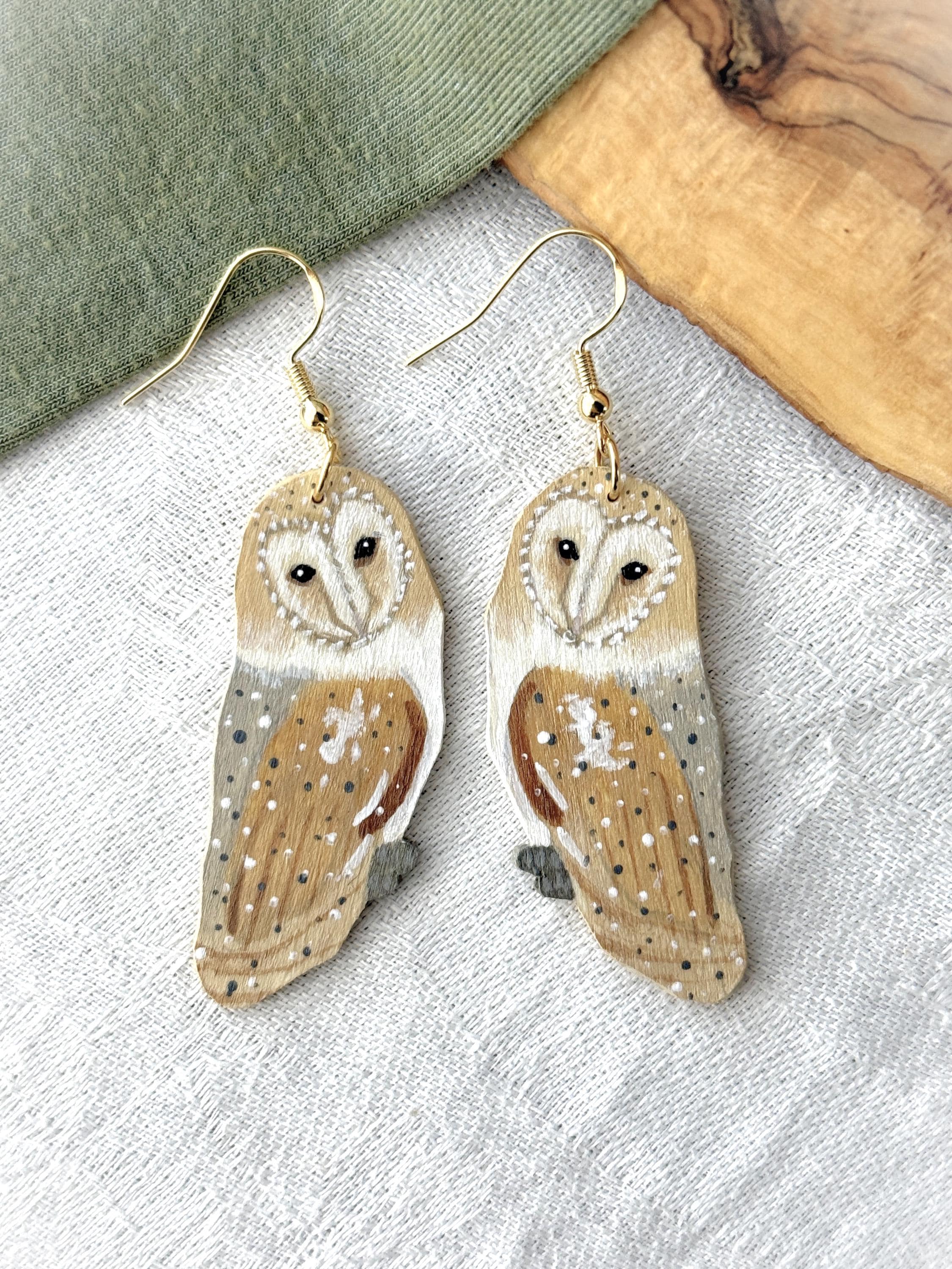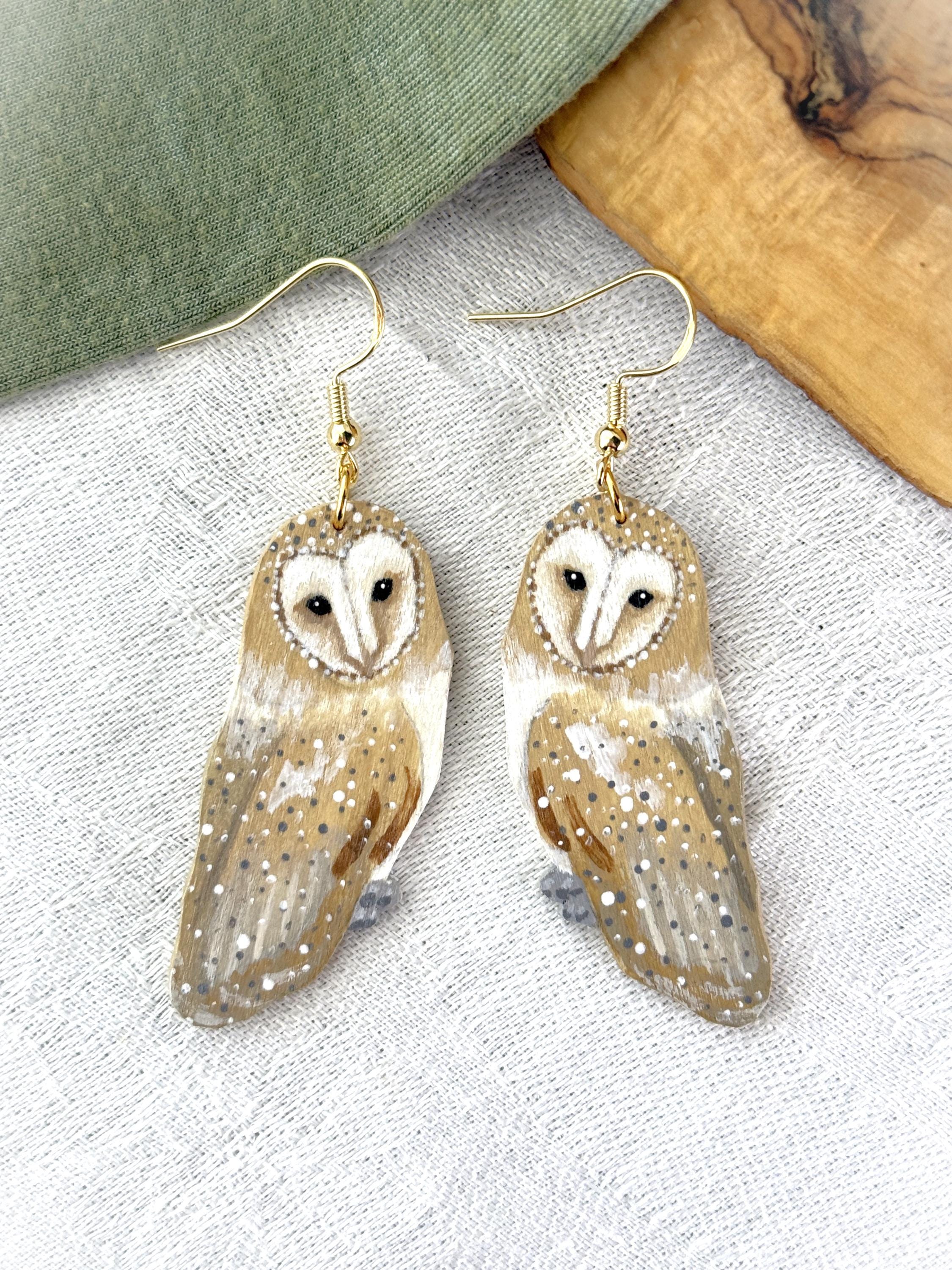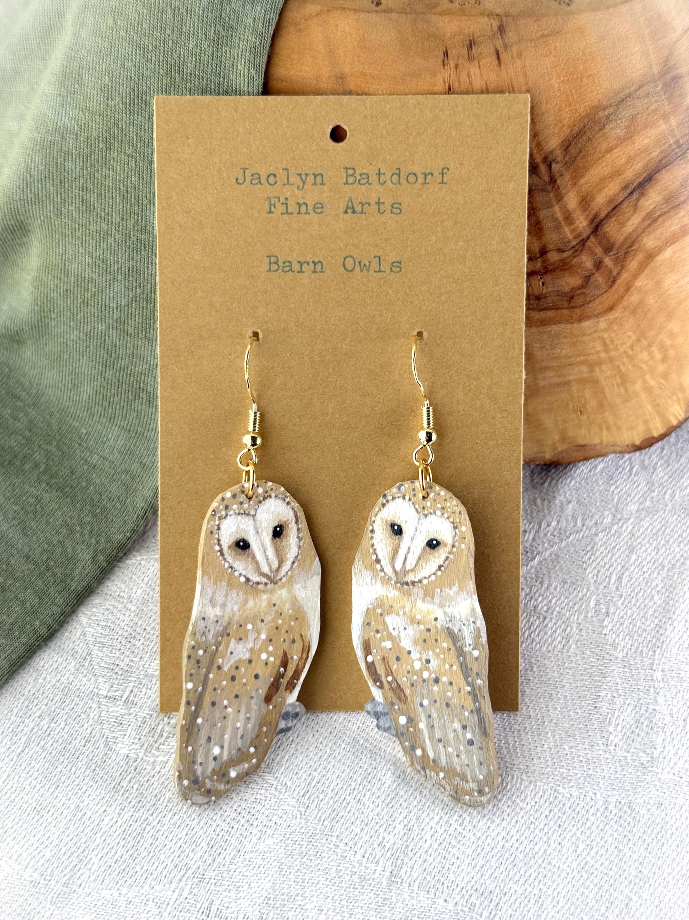Such a talented artist! These earrings are so pretty, and the owls are so delicately painted. My only critique is that I wish the backs were painted, too. Dangling earrings always shift around, and it irks me when the unfinished side flips front. I would have liked to see the back with a whitewash or the pretty speckled pattern of the owl's wings. But I knew what I was getting, as I wrote the seller and she responded right away. Very pleased with my purchase, and the shipping was prompt and packaging beautifully presented.