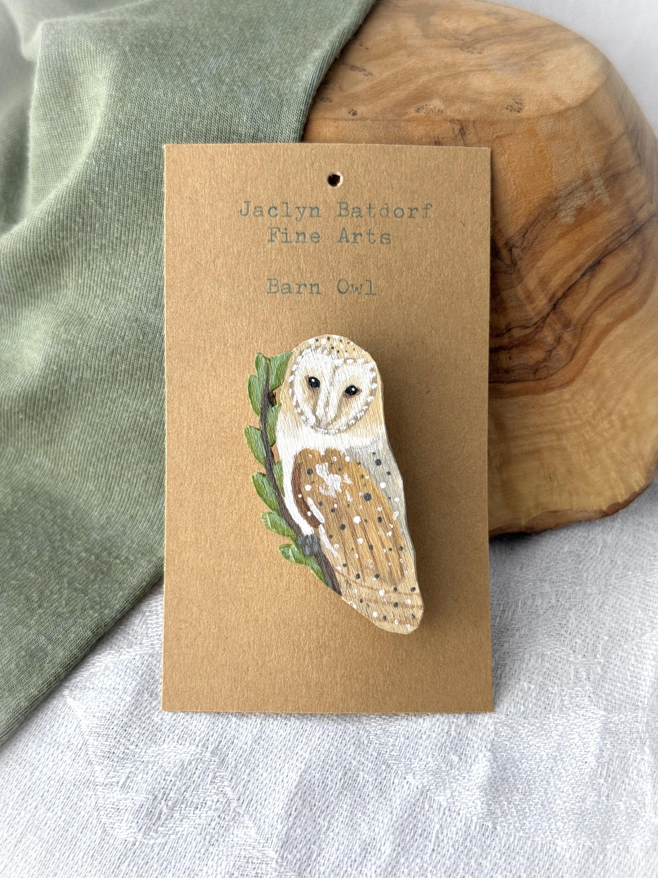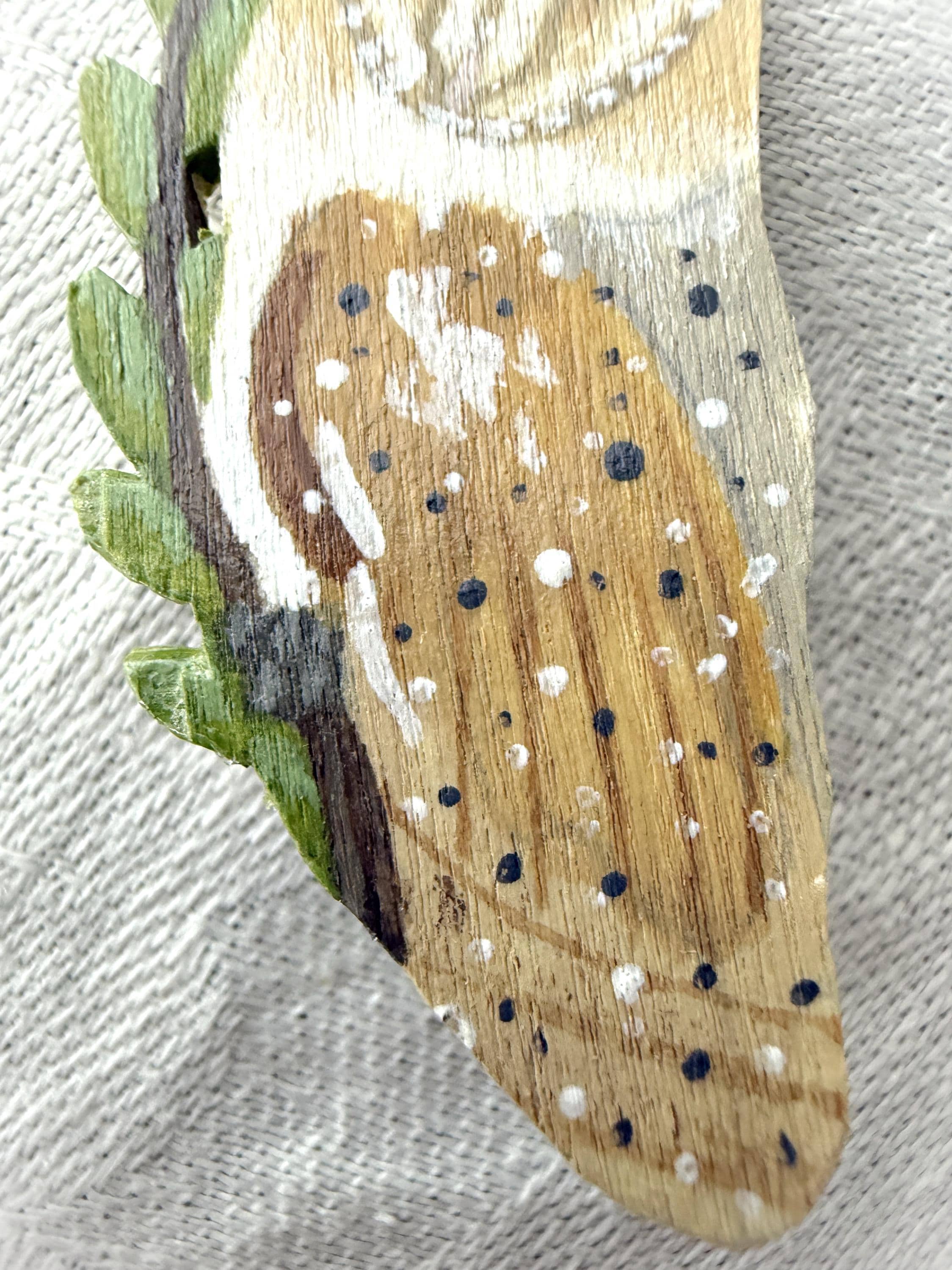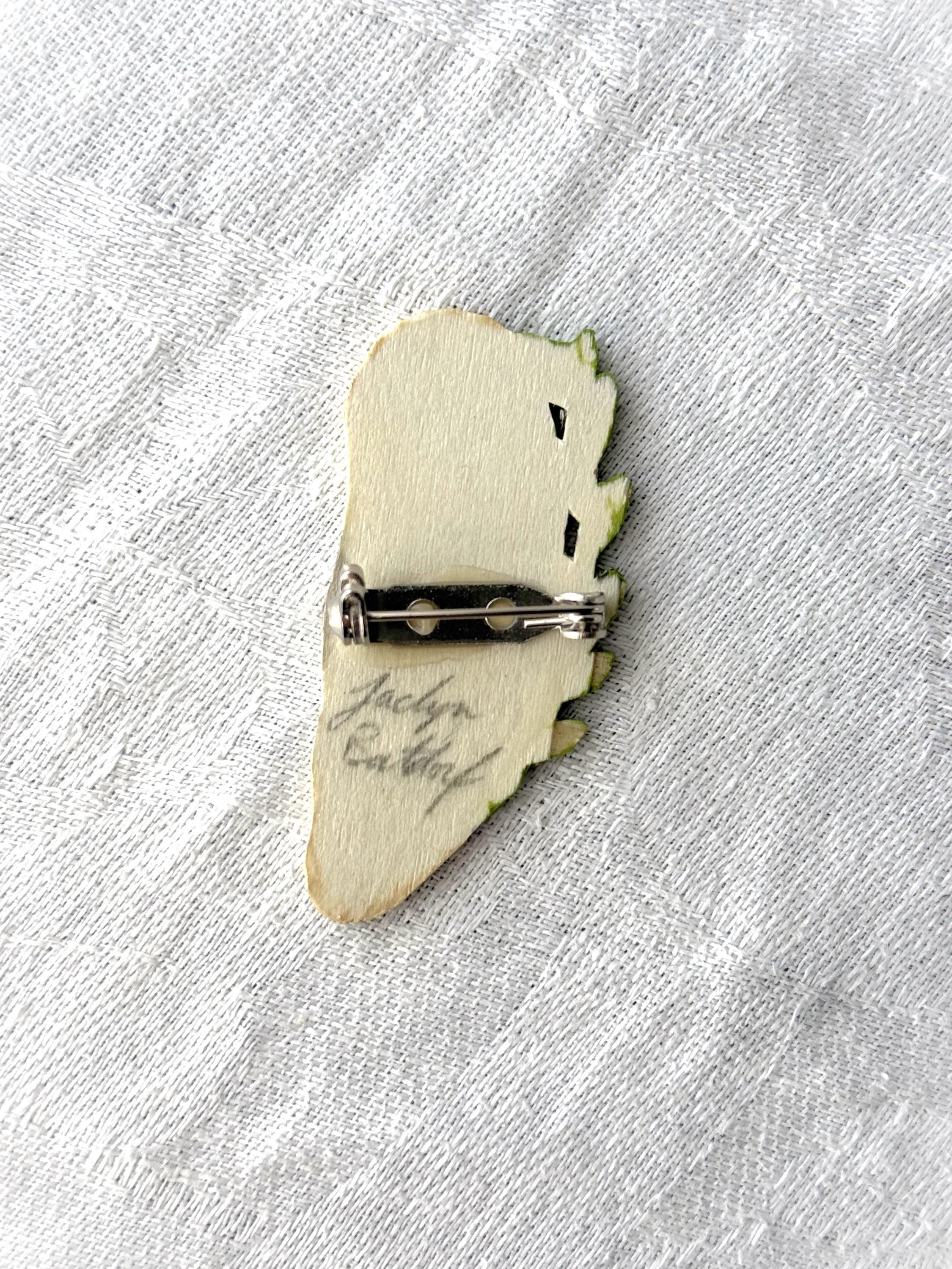 This original handcrafted brooch was carved and painted by hand in my studio and the piece you see in the photos is the exact one you will receive. They are made using acrylic paint on balsa wood with a 3/4" nickle free bar pin. Orders ship within 1-2 business days with tracking using USPS Ground Advantage Shipping.