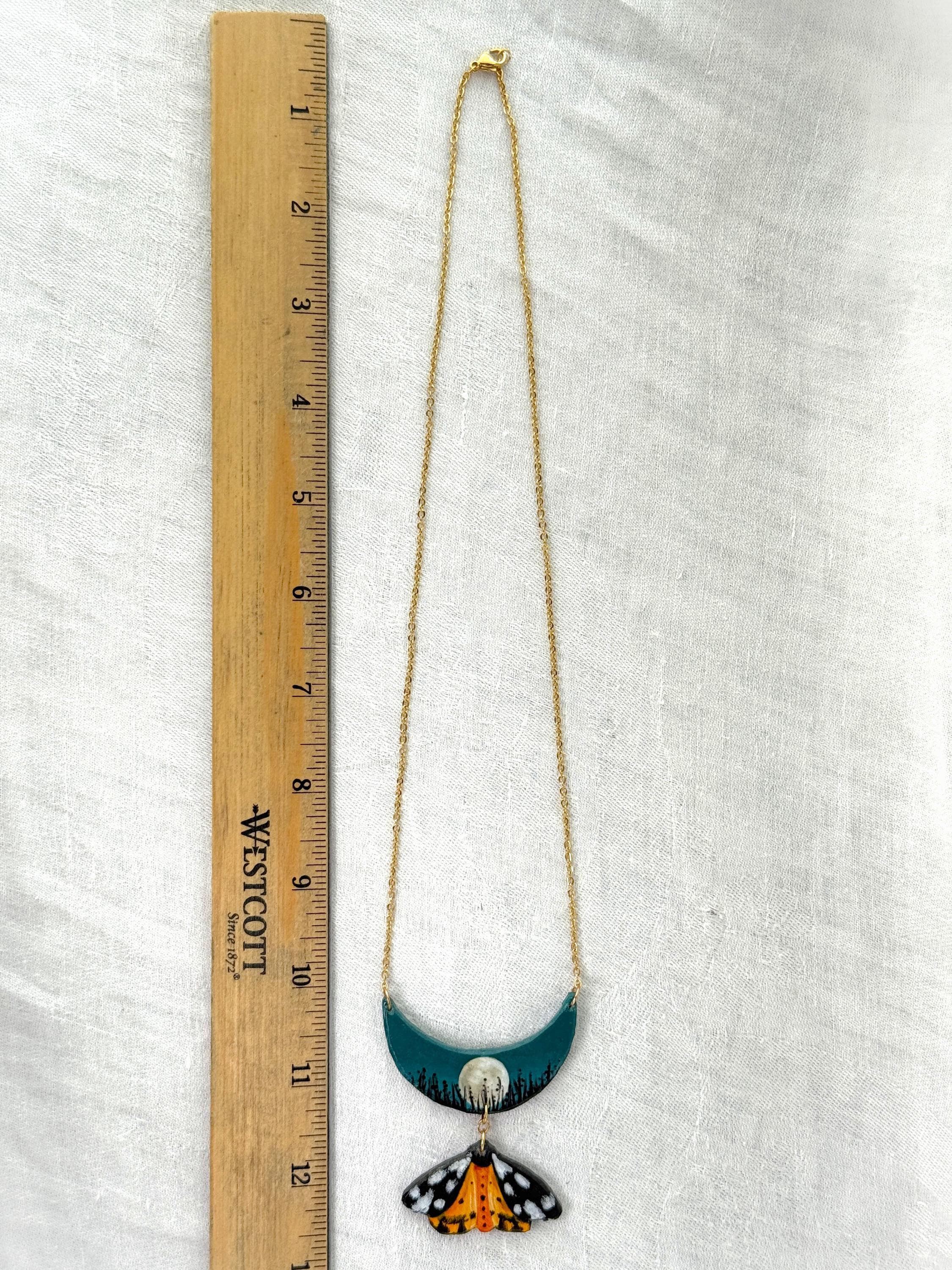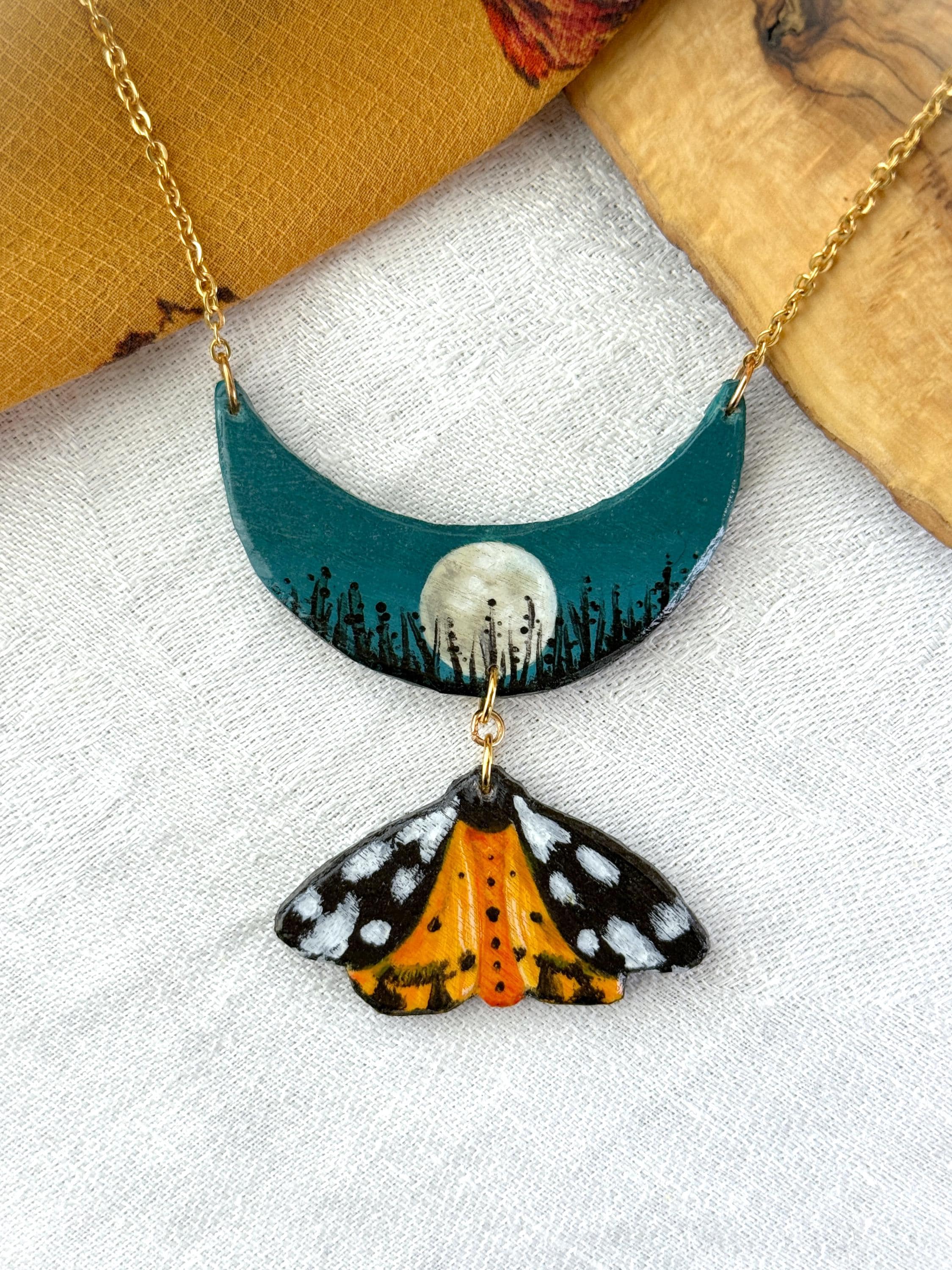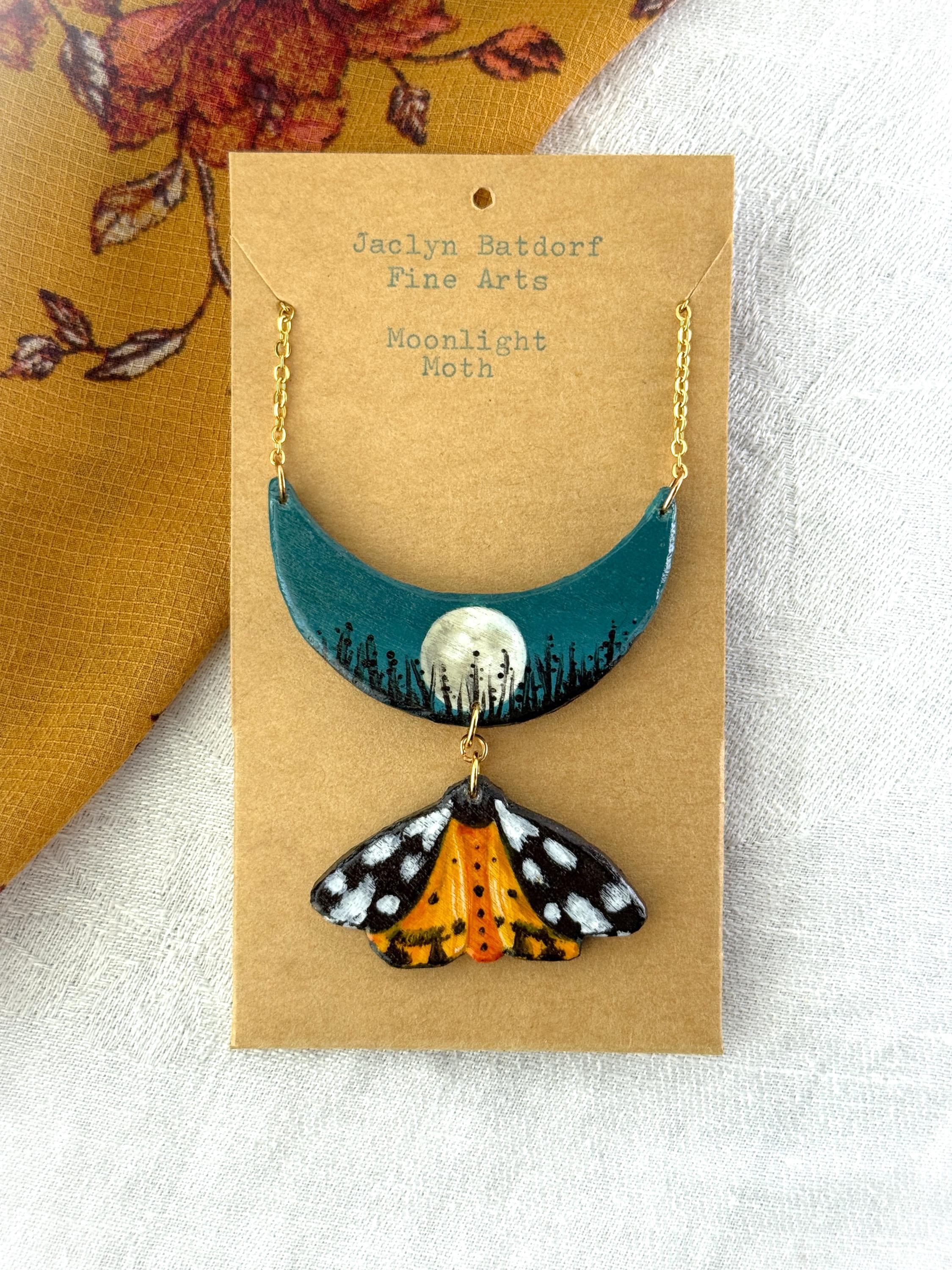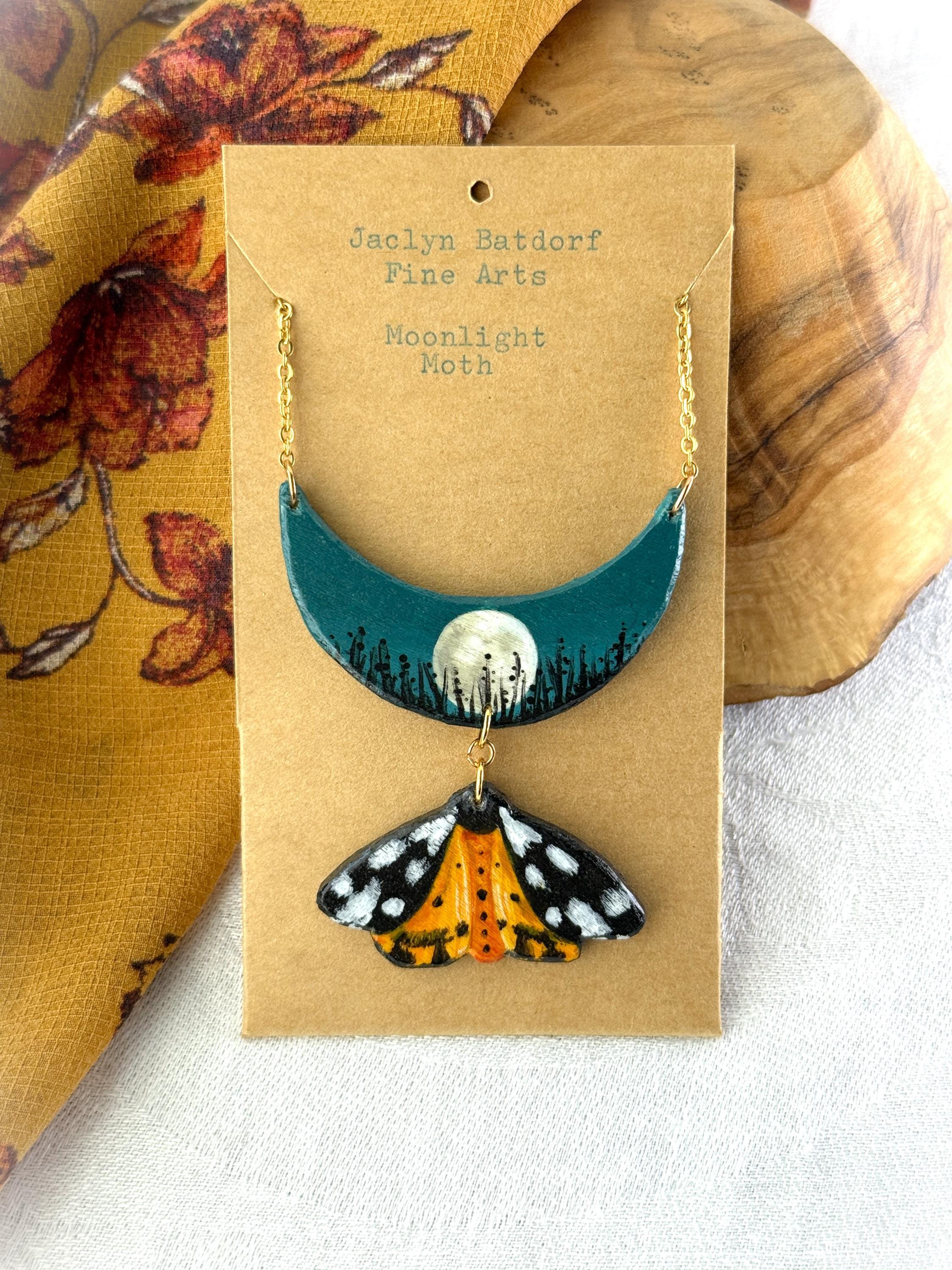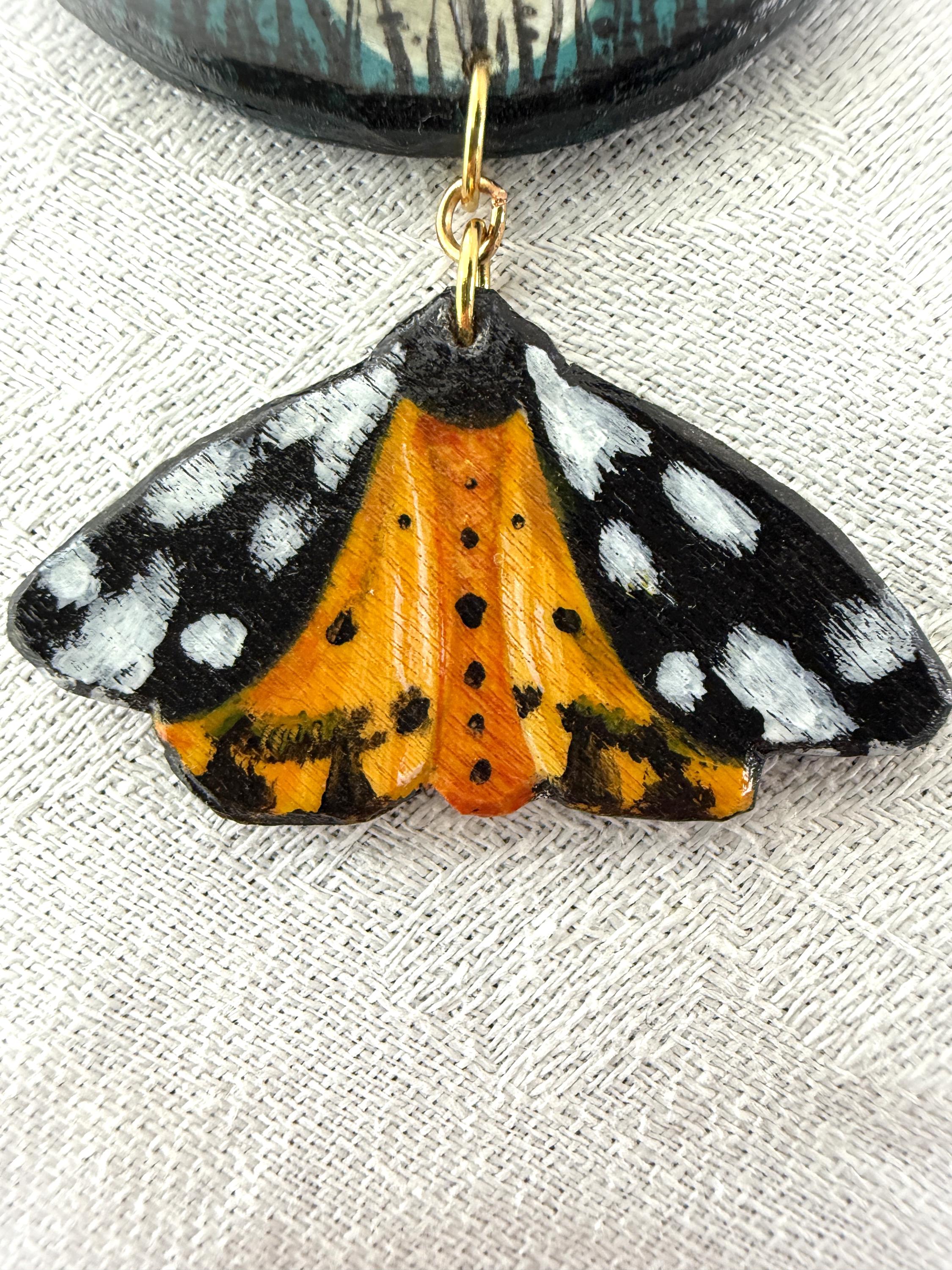 This original handcrafted necklace was carved and painted by hand in my studio and the piece you see in the photos is the exact one you will receive. They are made using acrylic paint on balsa wood with a stainless steel necklace chain for sensitive skin. Orders ship within 1-2 business days with tracking using USPS Ground Advantage Shipping.