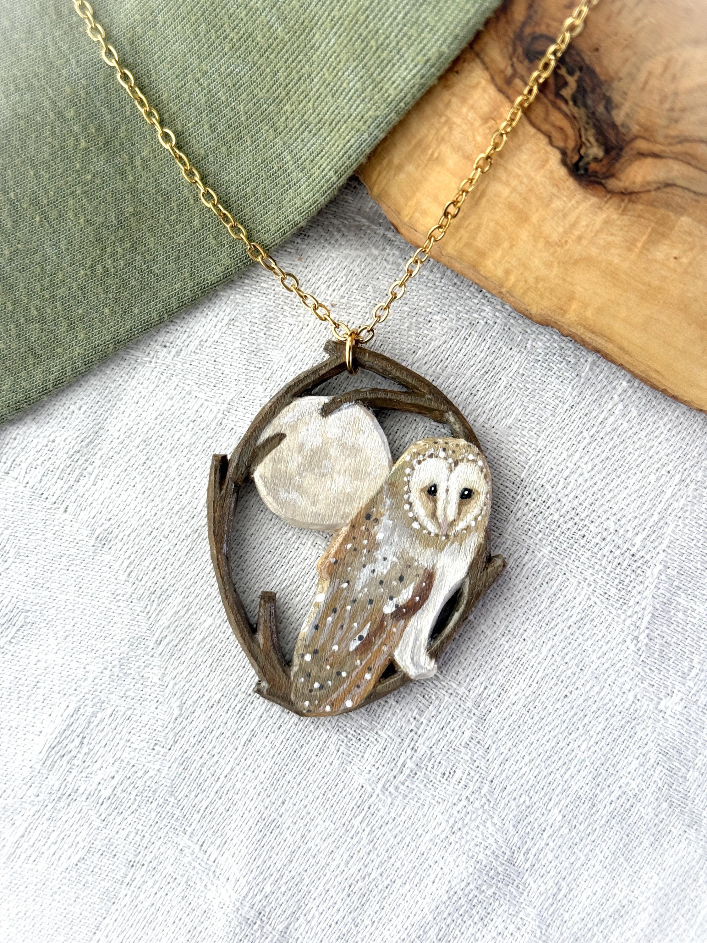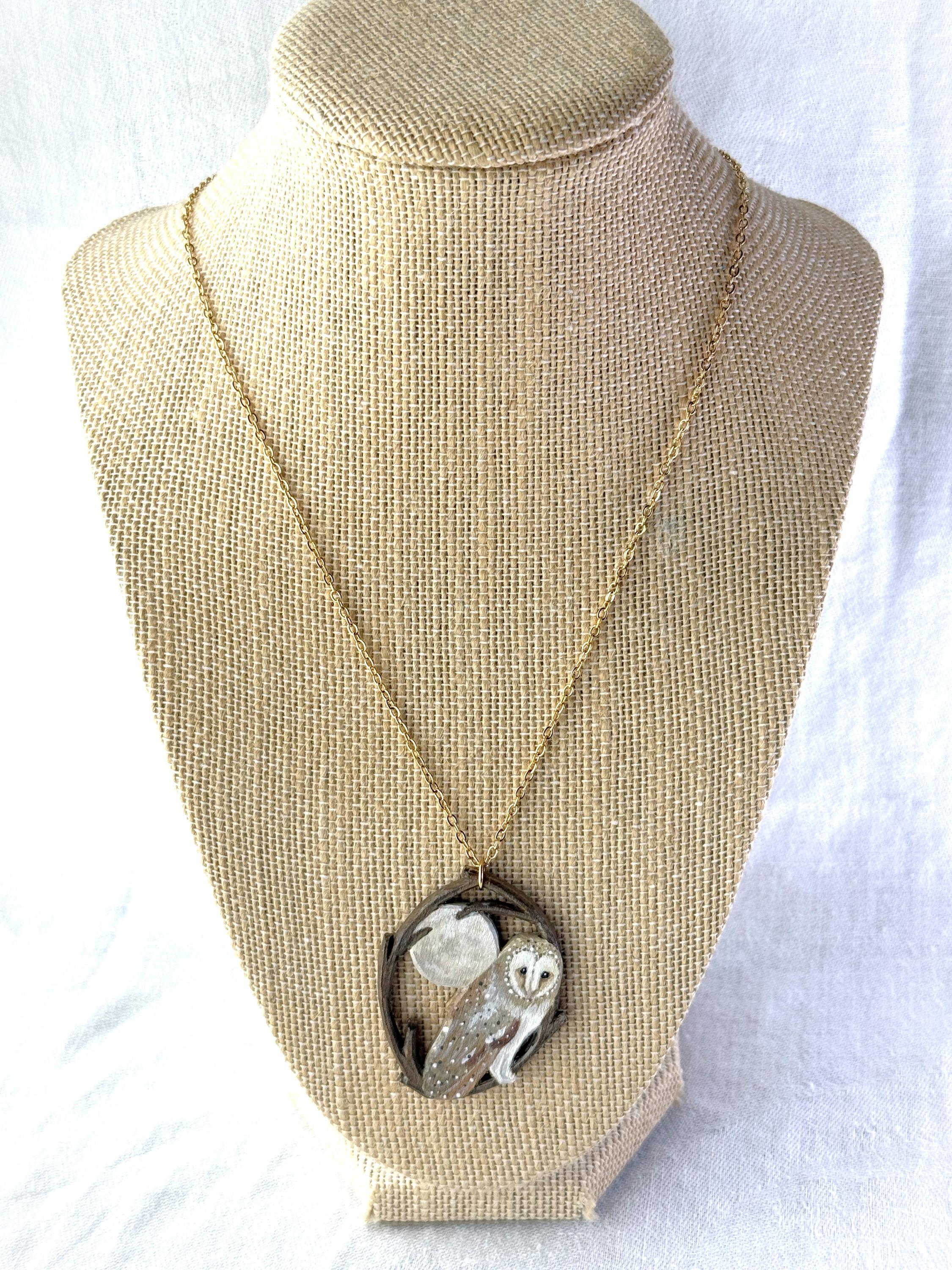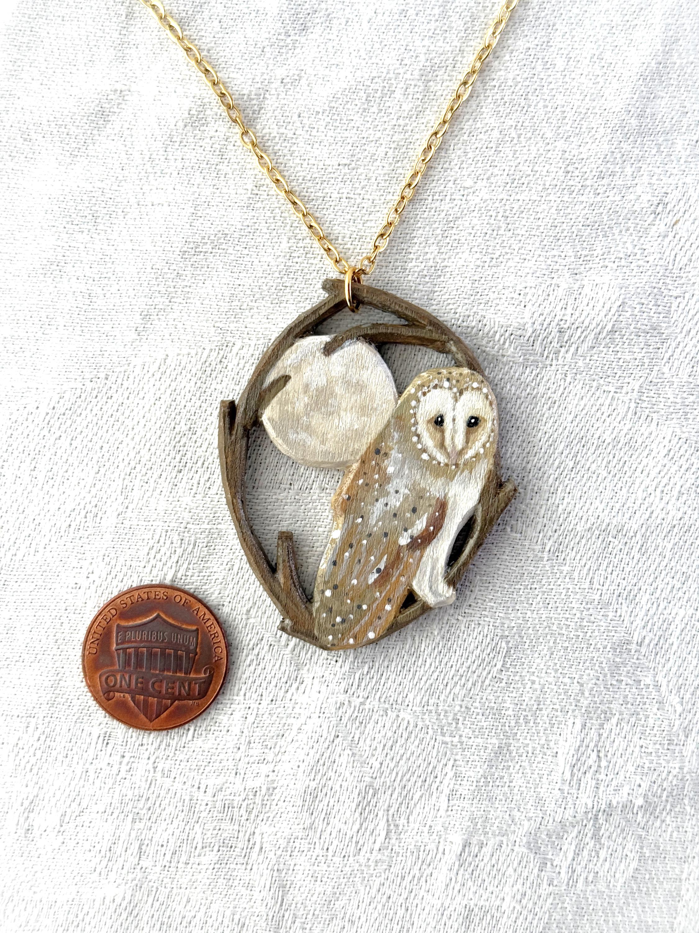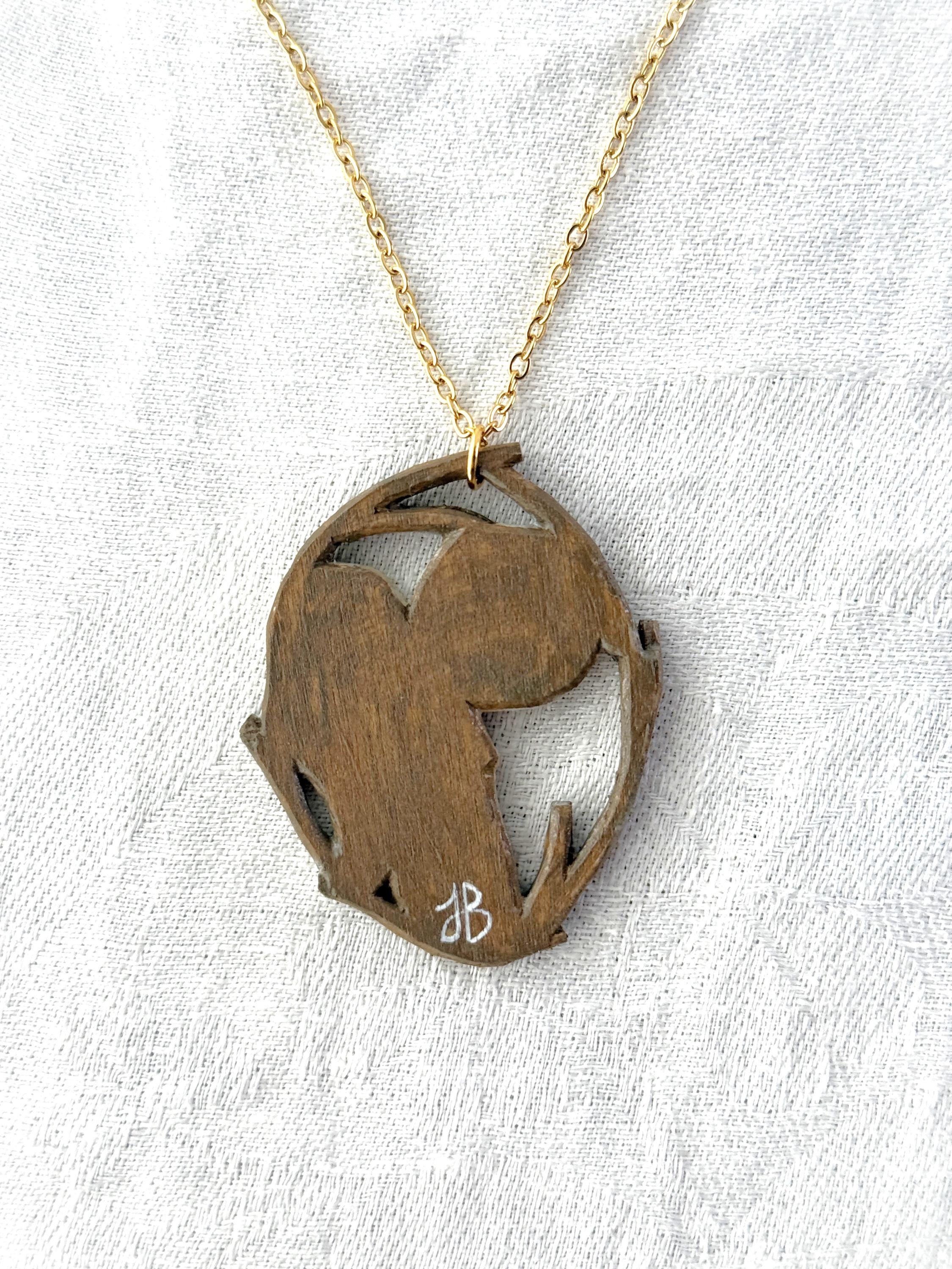 This original handcrafted necklace was carved and painted by hand in my studio and the piece you see in the photos is the exact one you will receive. They are made using acrylic paint on balsa wood with a stainless steel necklace chain for sensitive skin. Orders ship within 1-2 business days with tracking using USPS Ground Advantage Shipping.