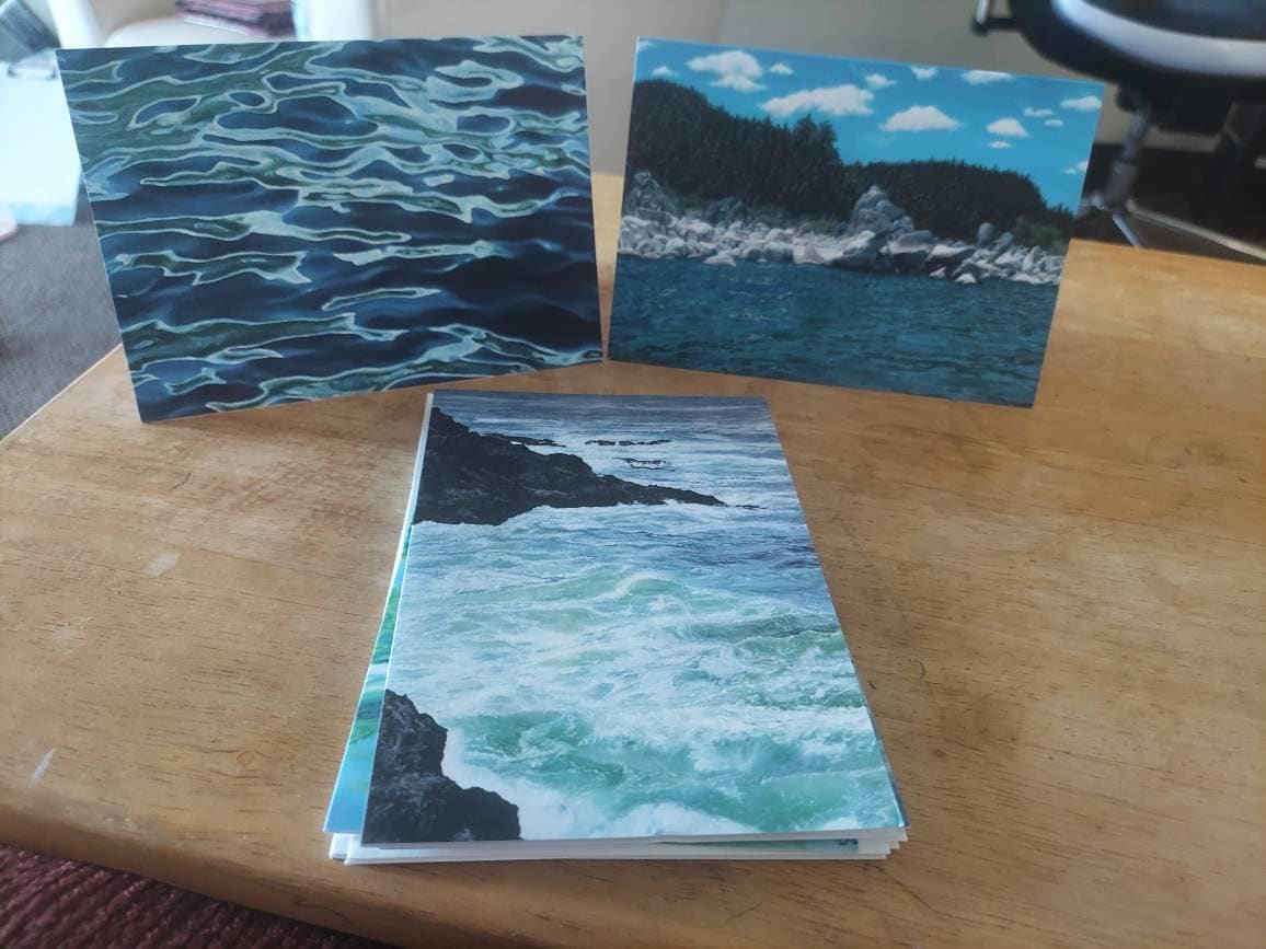 This variety pack of blank greeting cards are reproductions of my original acrylic paintings. This listing includes 5 vibrantly printed cards measuring about 5 3/4" x 4 2/8" with 5 white envelopes. These cards are printed on a sturdy 16pt paper with a matte finish and my logo/shop information on the back.