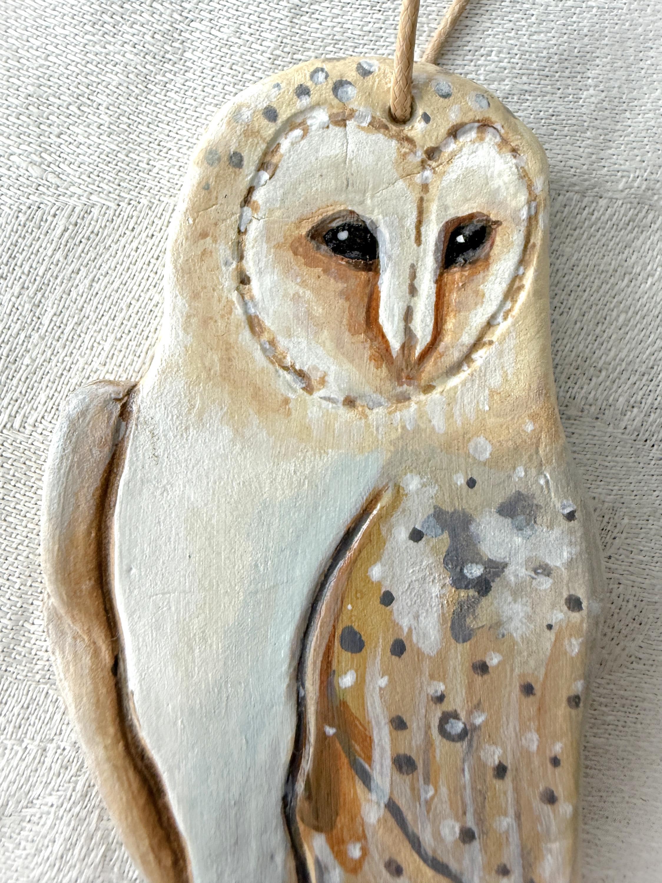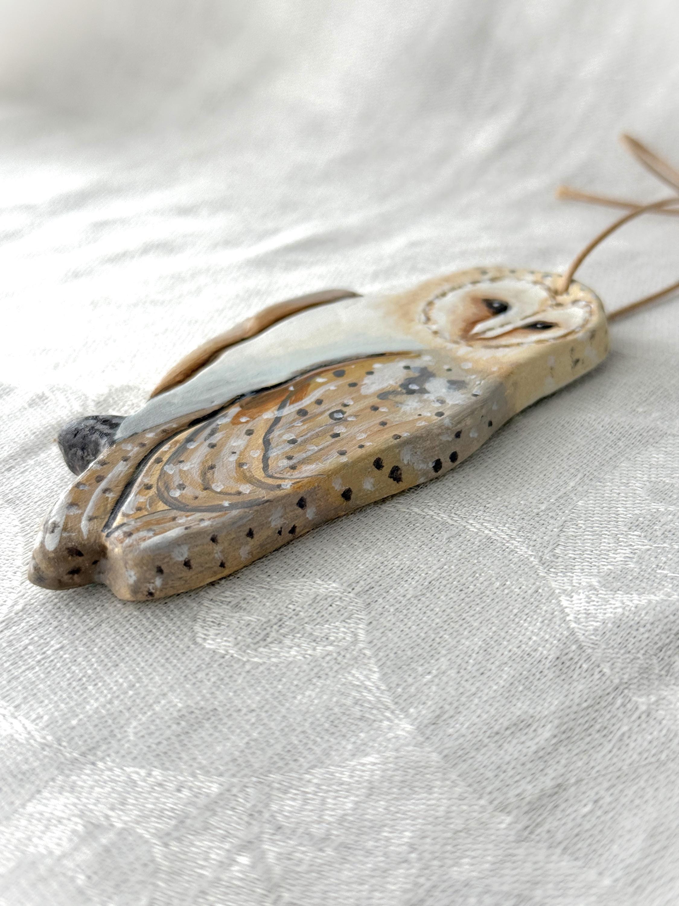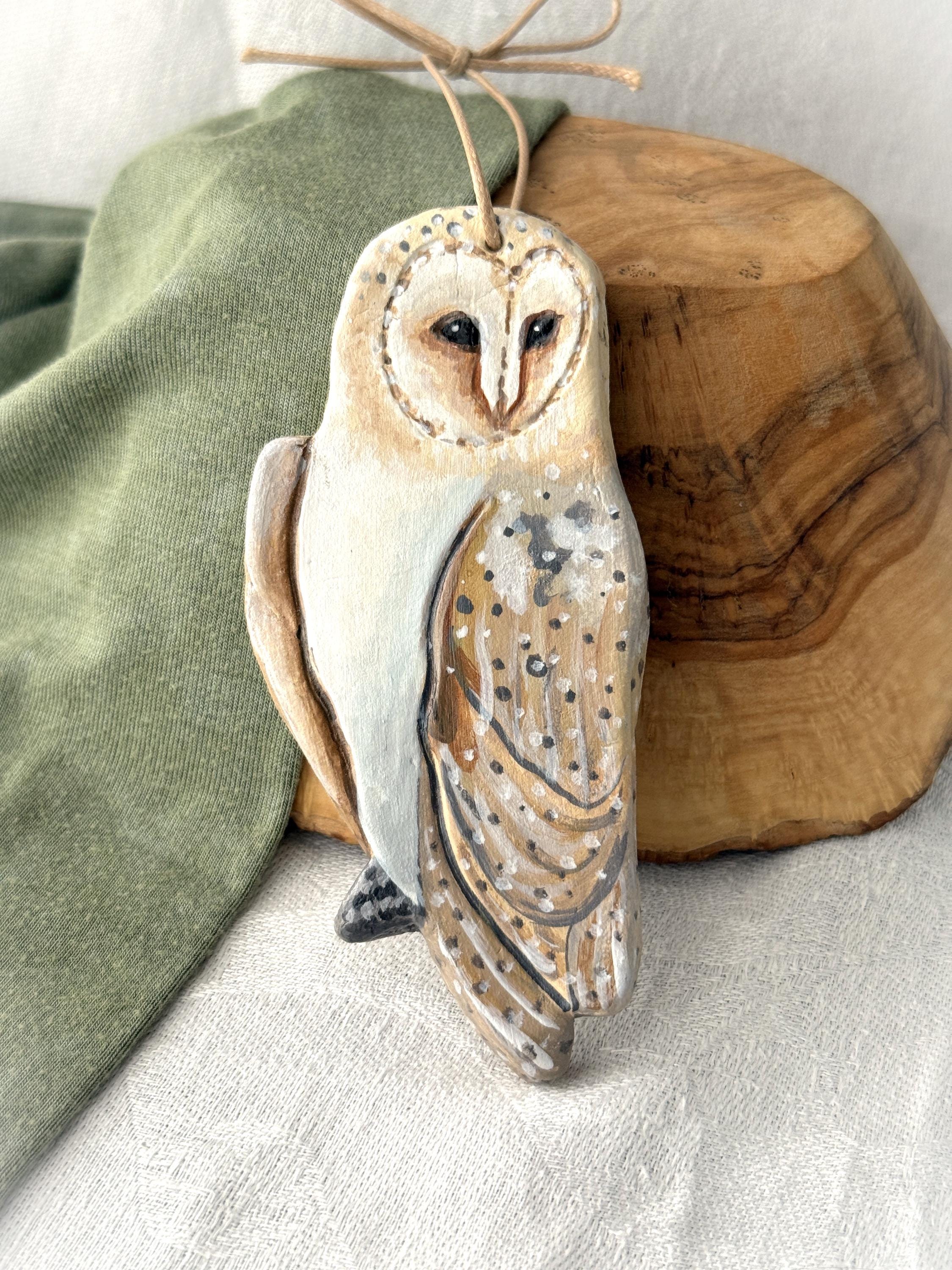 Painted Clay Barn Owl Christmas Ornament and Wall Hanging for Gallery Walls