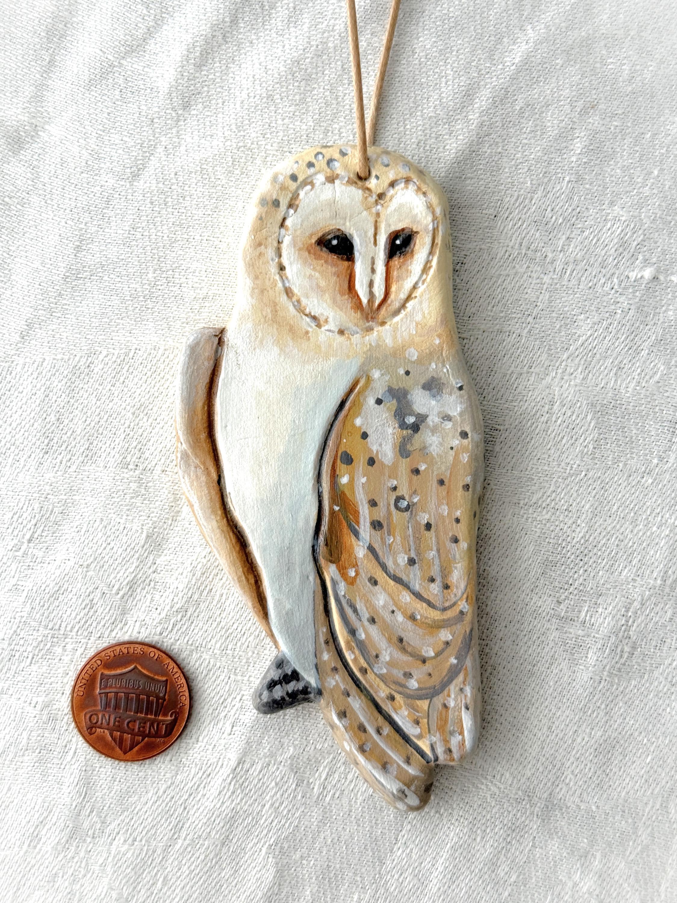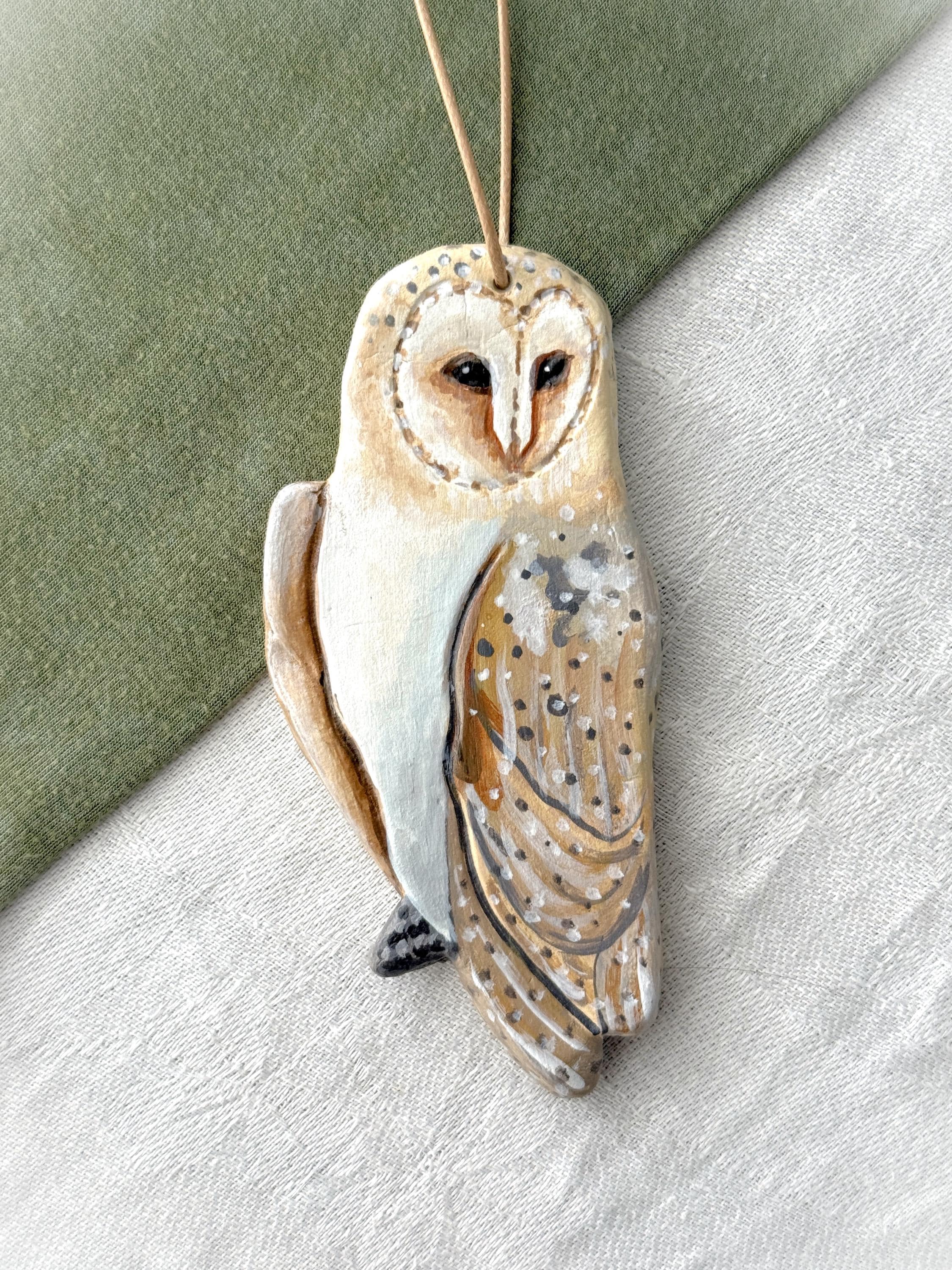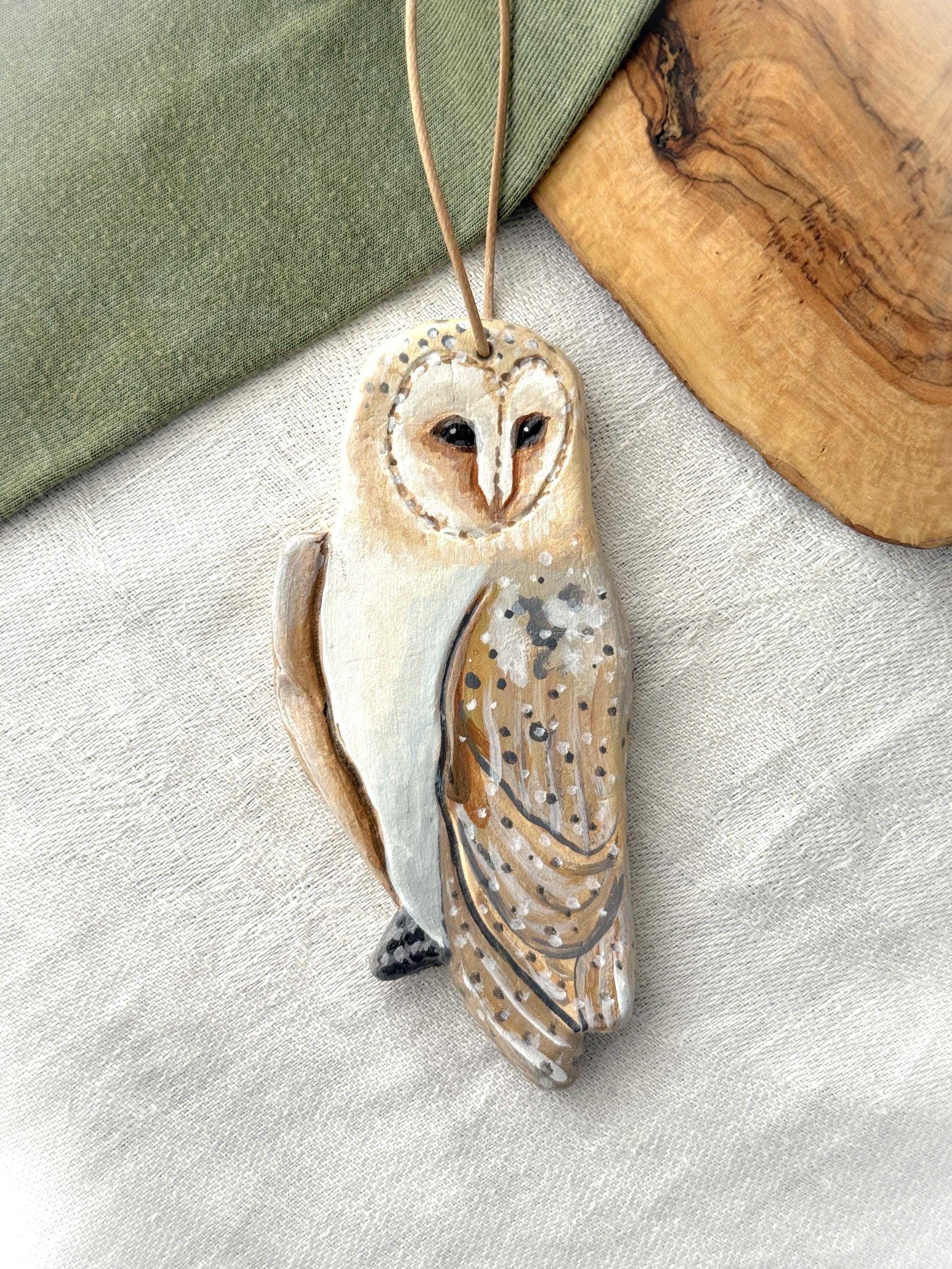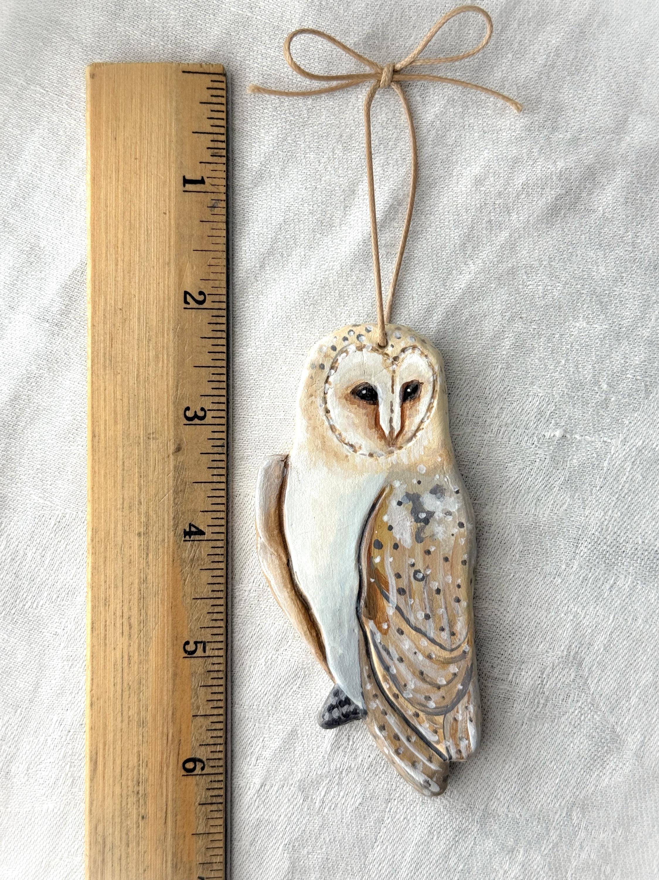 Painted Clay Barn Owl Christmas Ornament and Wall Hanging for Gallery Walls