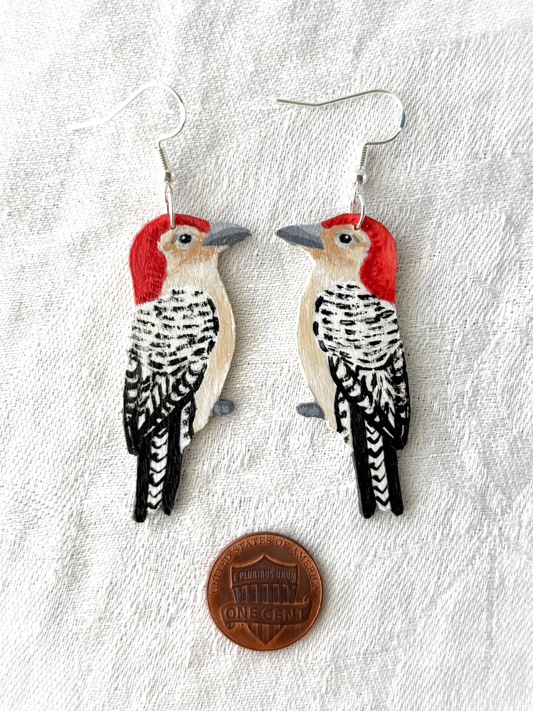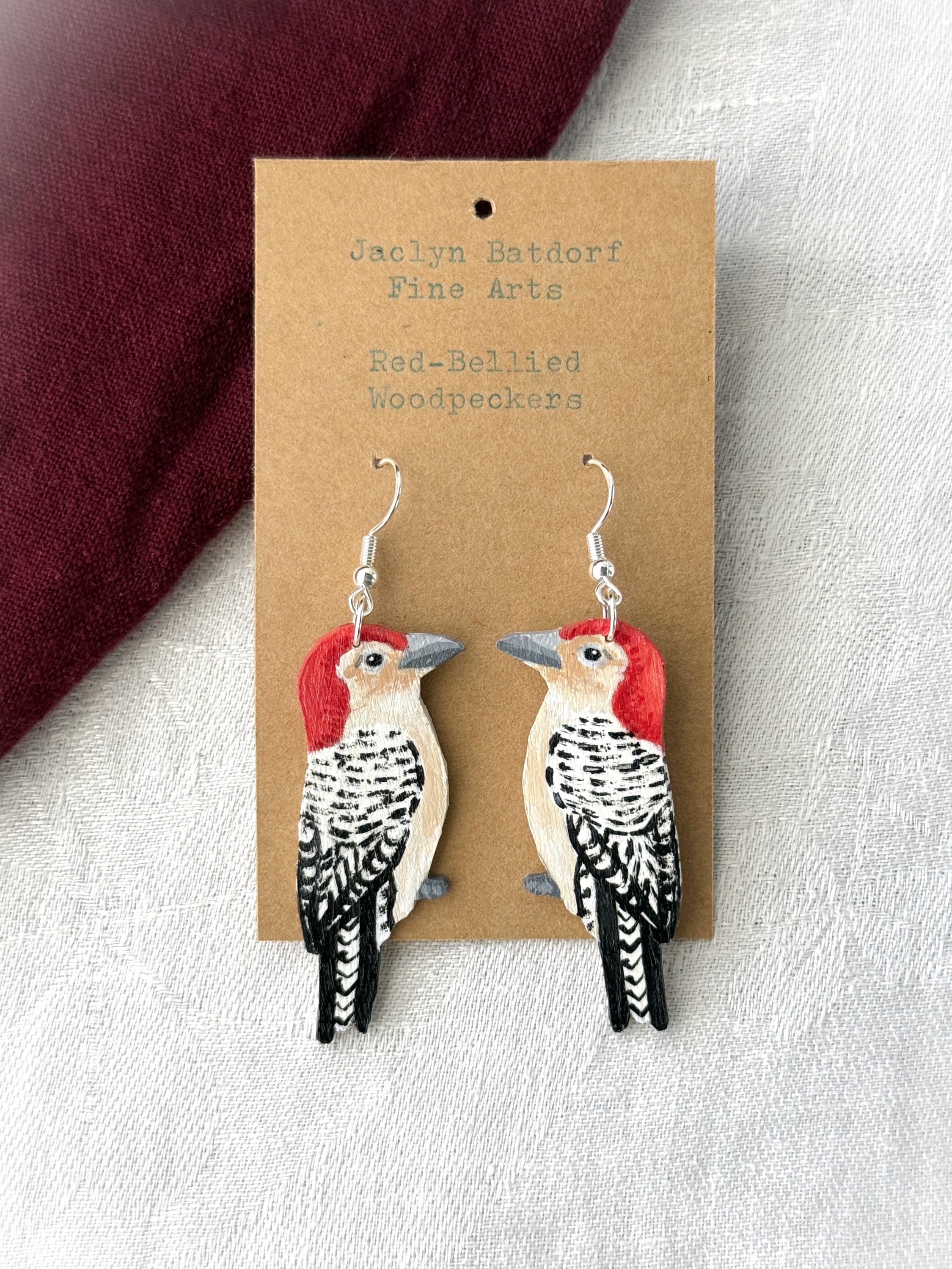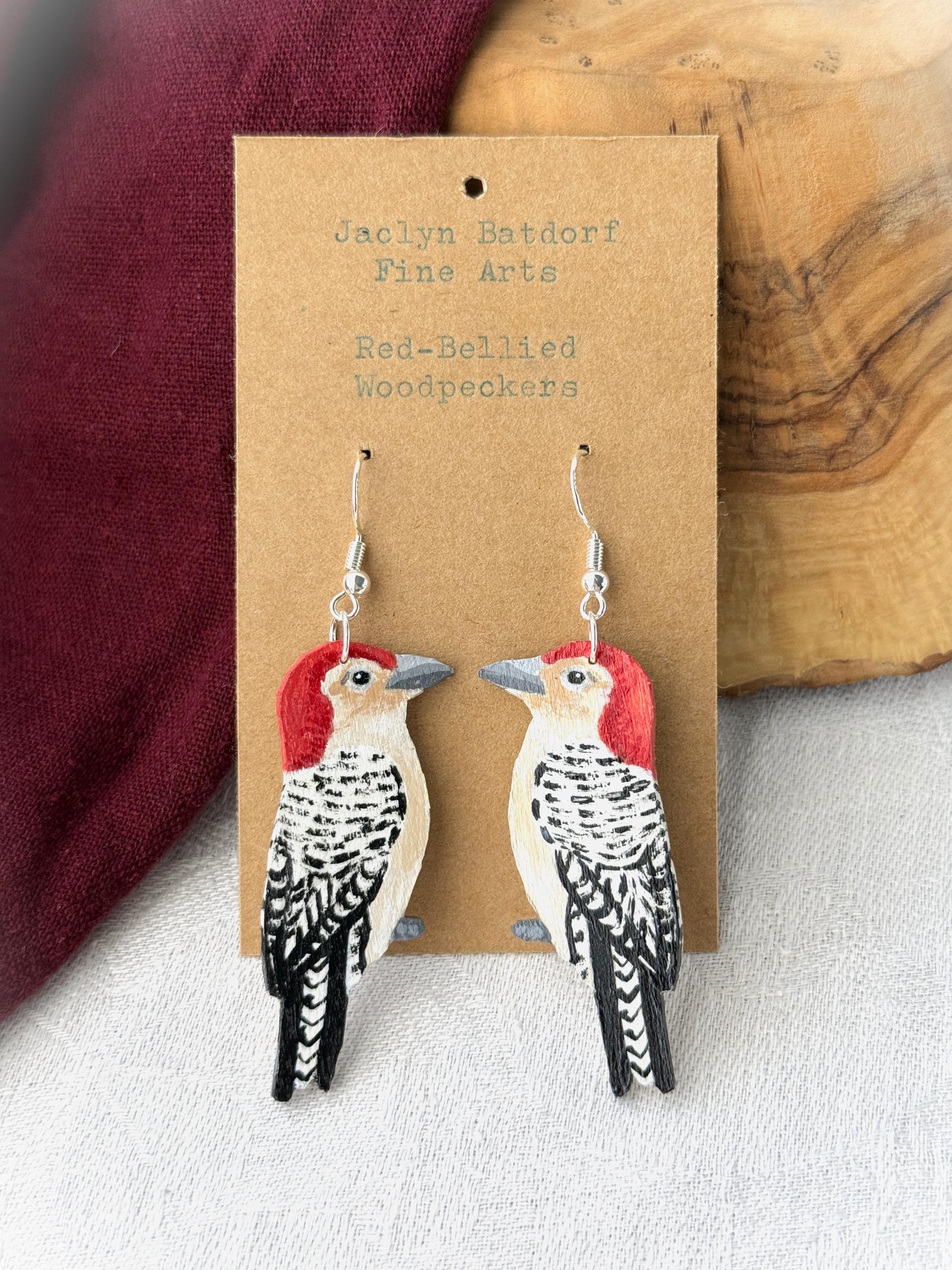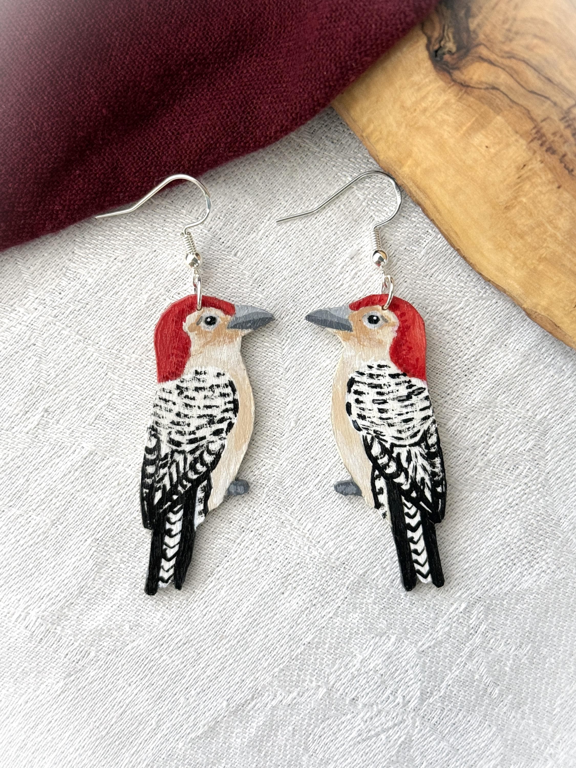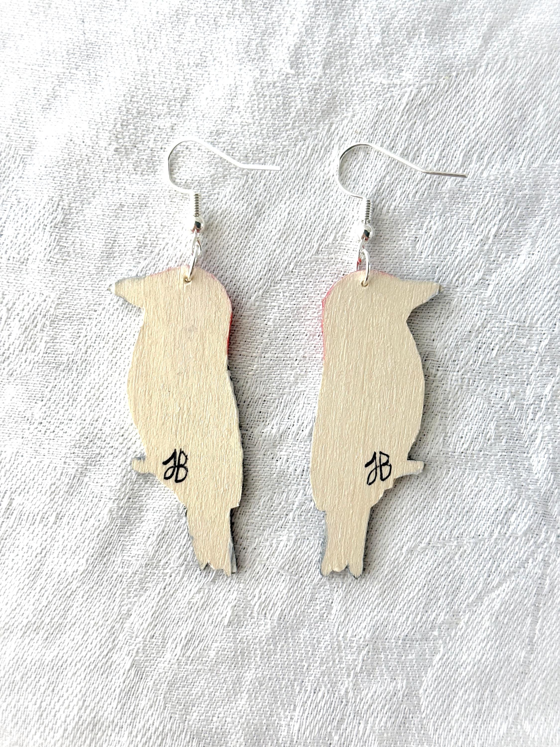These original handcrafted earrings are carved and painted by hand in my studio and the pair you see in the photos is the exact one you will receive. They are made using acrylic paint on lightweight balsa wood with sterling silver hooks for sensitive ears (the gold hooks are gold plated sterling silver). Orders ship within 1-2 business days with tracking using USPS Ground Advantage Shipping.