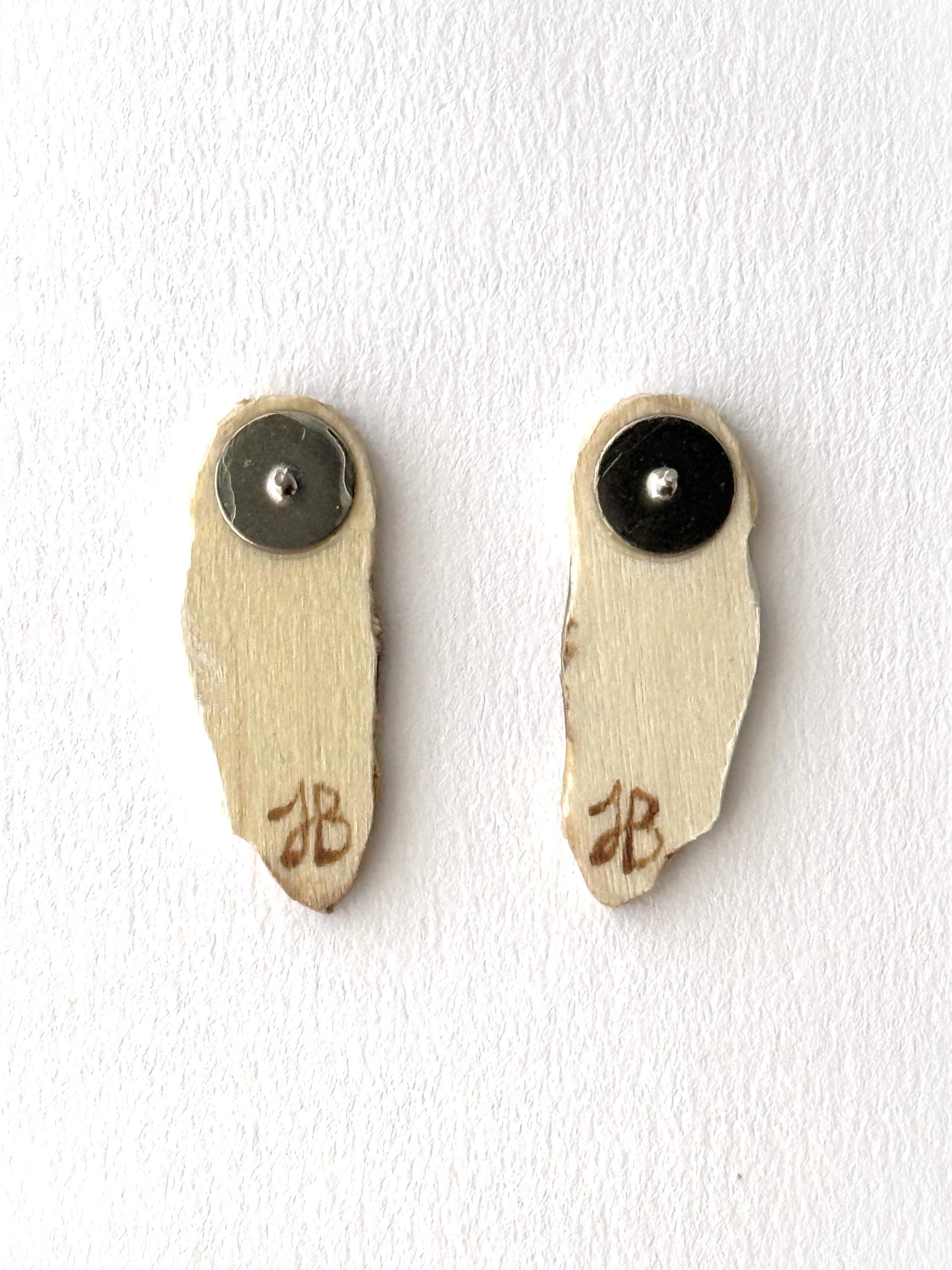 These original handcrafted earrings are carved and painted by hand in my studio and the pair you see in the photos is the exact one you will receive. They are made using acrylic paint on lightweight balsa wood with stainless steel studs for sensitive ears.. Orders ship within 1-2 business days with tracking using USPS Ground Advantage Shipping.