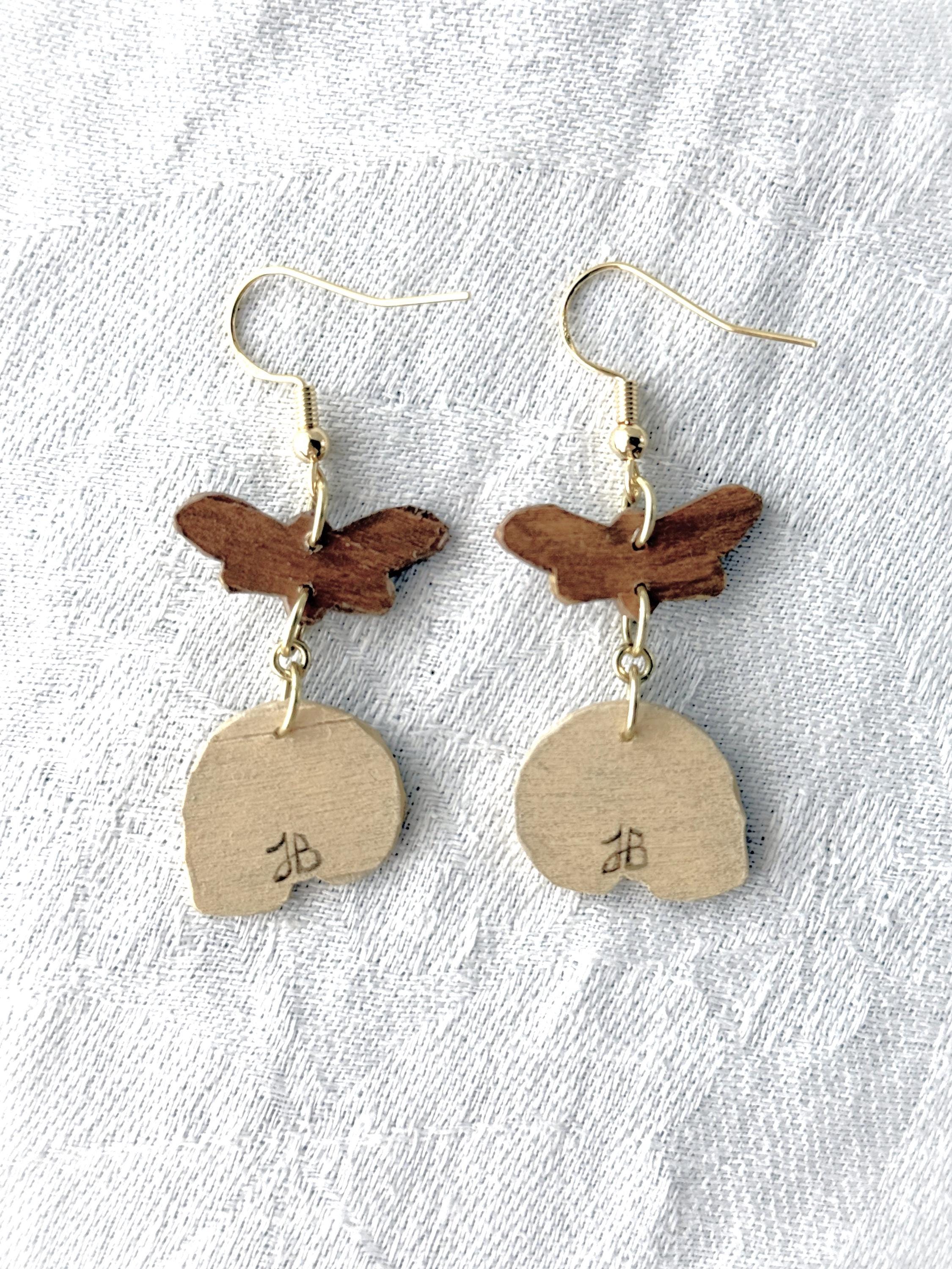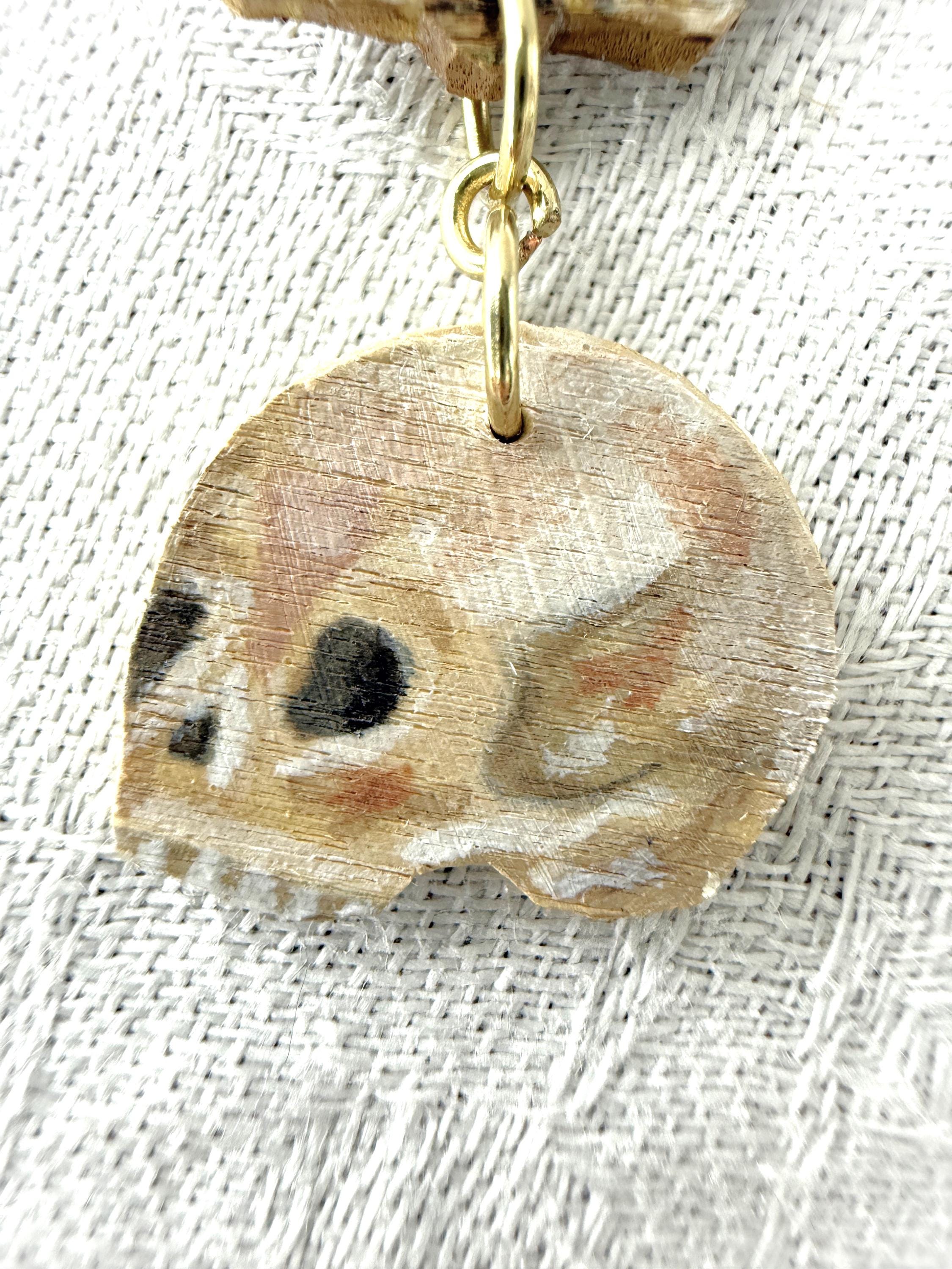 These original handcrafted earrings are carved and painted by hand in my studio and the pair you see in the photos is the exact one you will receive. They are made using acrylic paint on lightweight balsa wood with sterling silver hooks for sensitive ears (the gold hooks are gold plated sterling silver). Orders ship within 1-2 business days with tracking using USPS Ground Advantage Shipping.