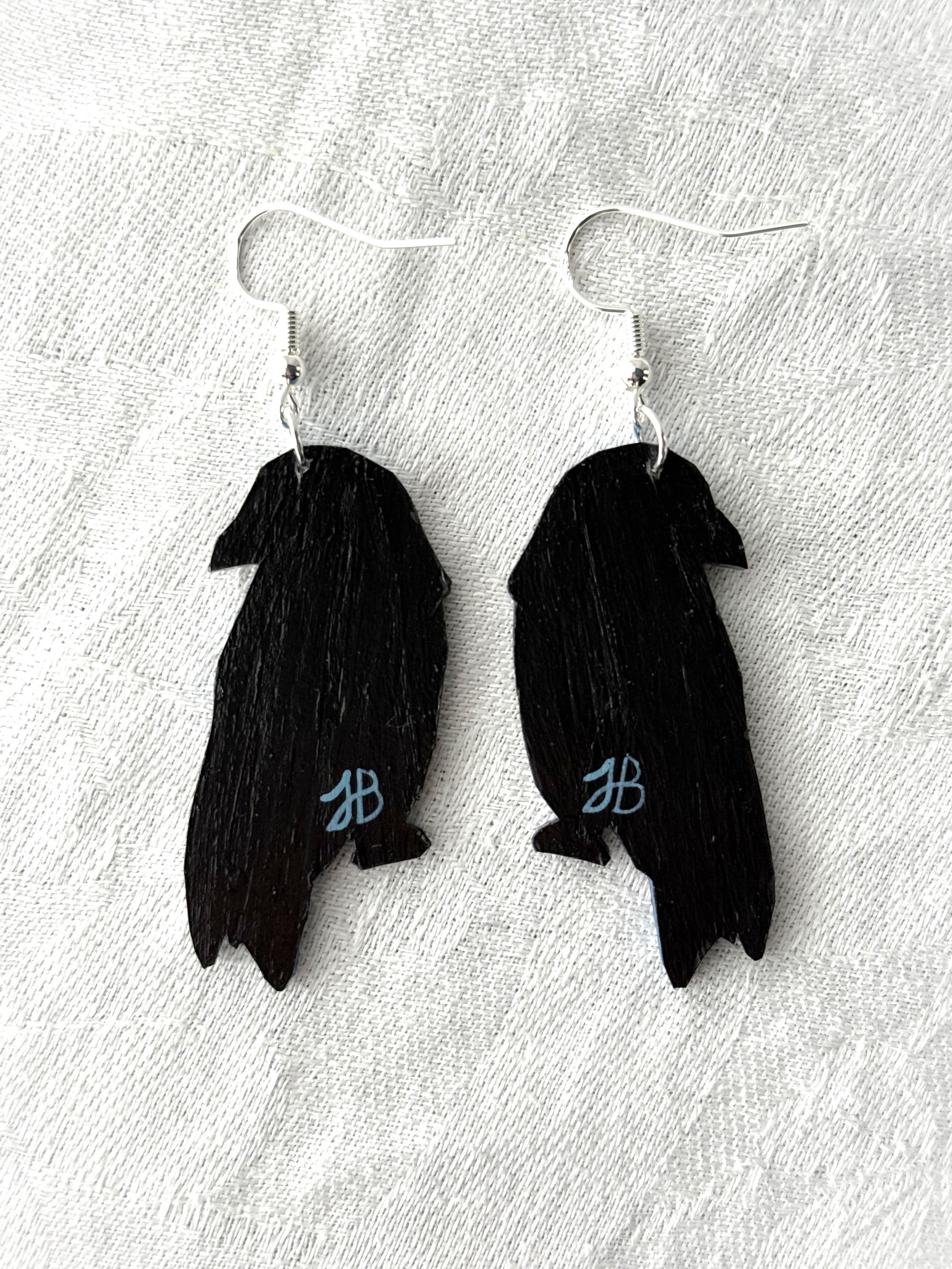 These original handcrafted earrings are carved and painted by hand in my studio and the pair you see in the photos is the exact one you will receive. They are made using acrylic paint on lightweight balsa wood with sterling silver hooks for sensitive ears (the gold hooks are gold plated sterling silver). Orders ship within 1-2 business days with tracking using USPS Ground Advantage Shipping.