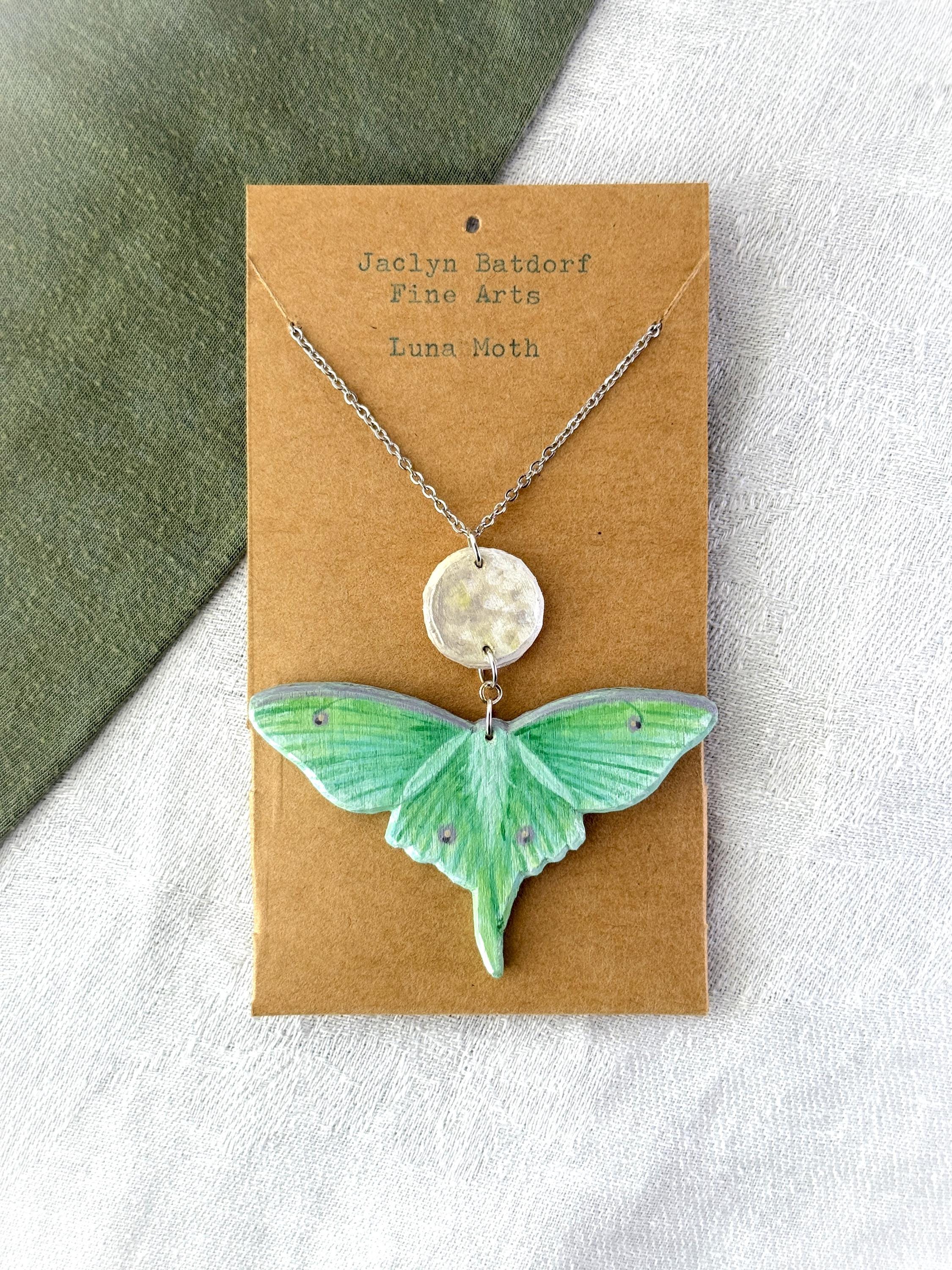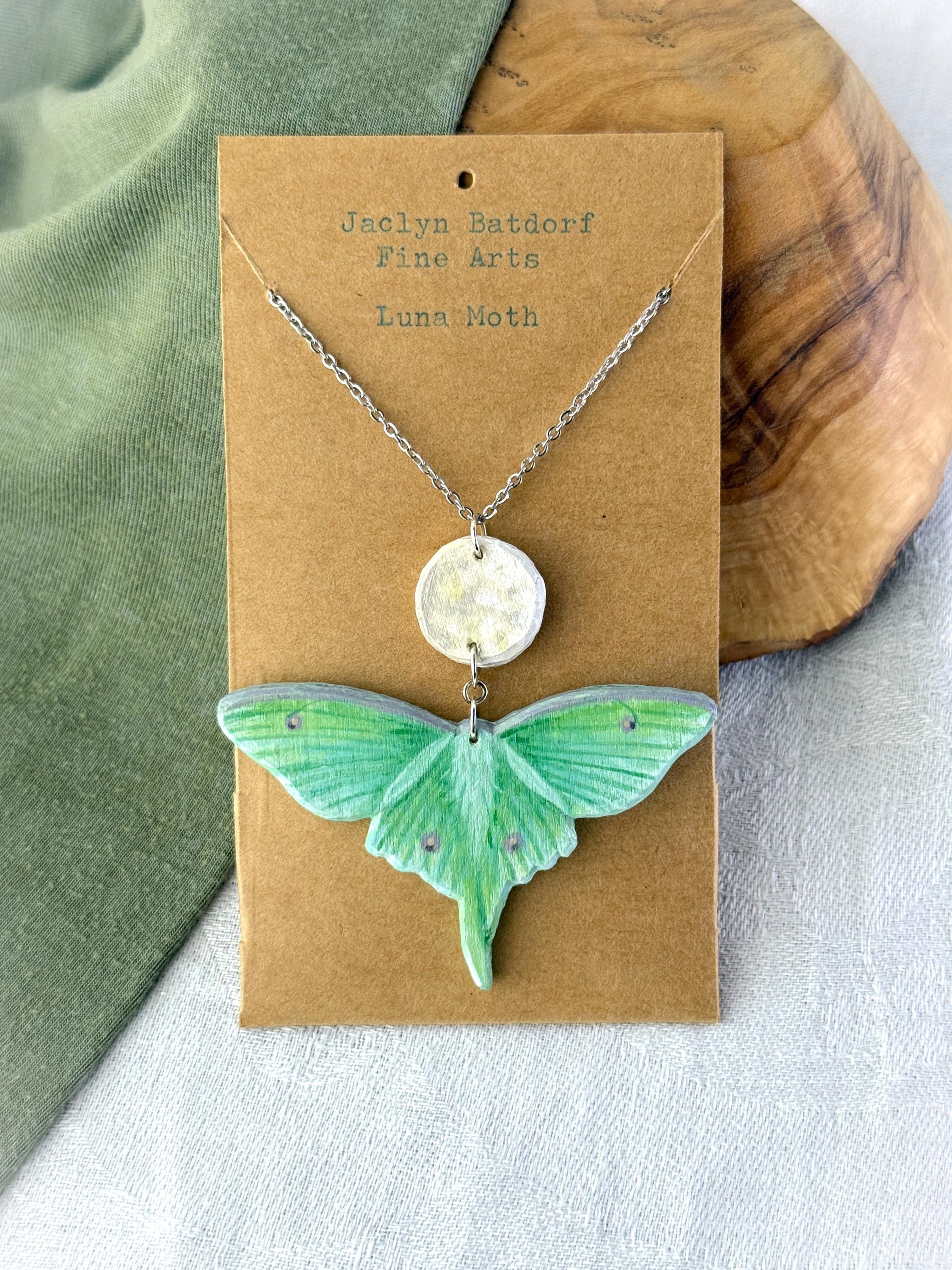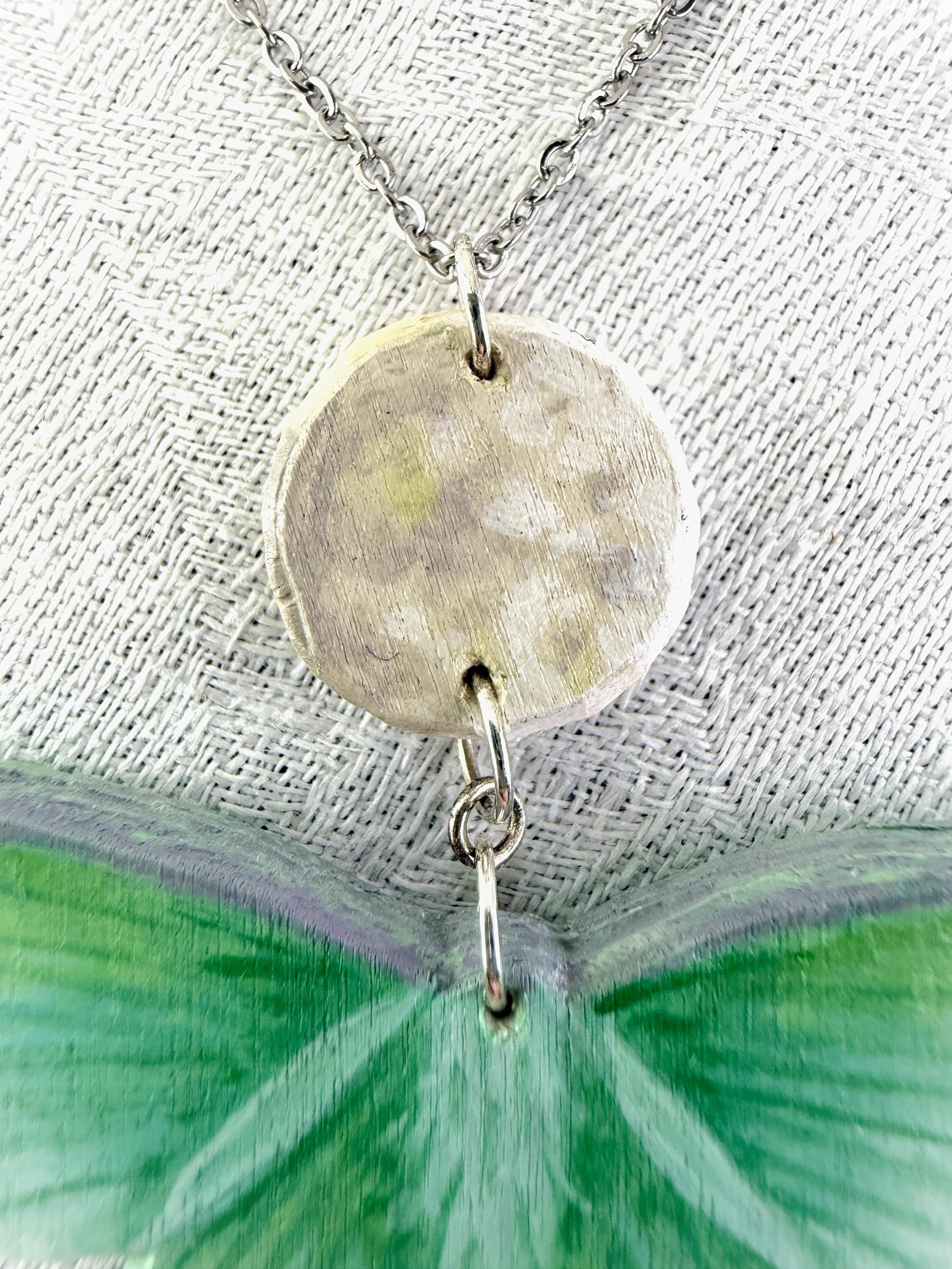 This original handcrafted necklace was carved and painted by hand in my studio and the piece you see in the photos is the exact one you will receive. They are made using acrylic paint on balsa wood with a stainless steel necklace chain for sensitive skin. Orders ship within 1-2 business days with tracking using USPS Ground Advantage Shipping.