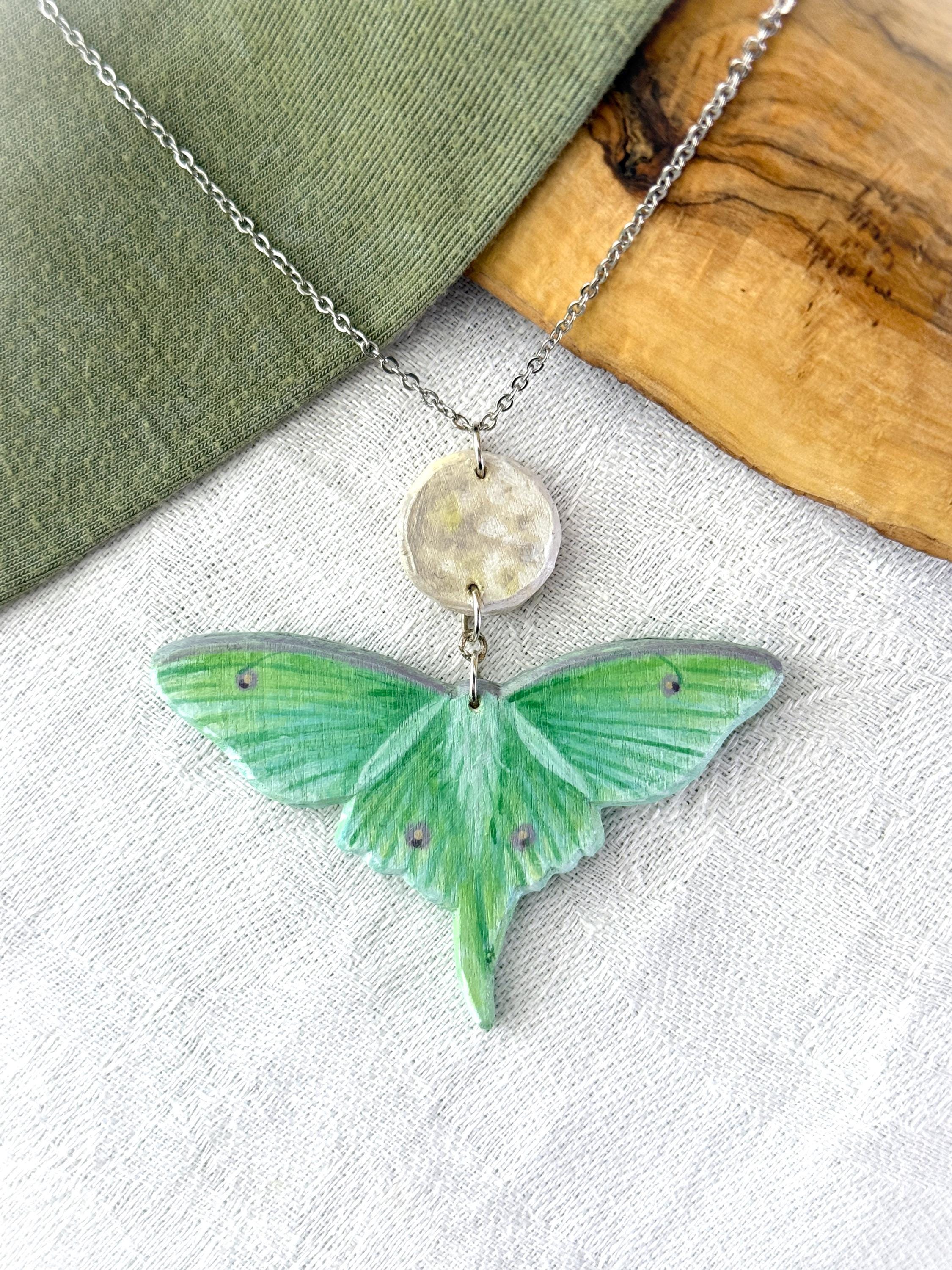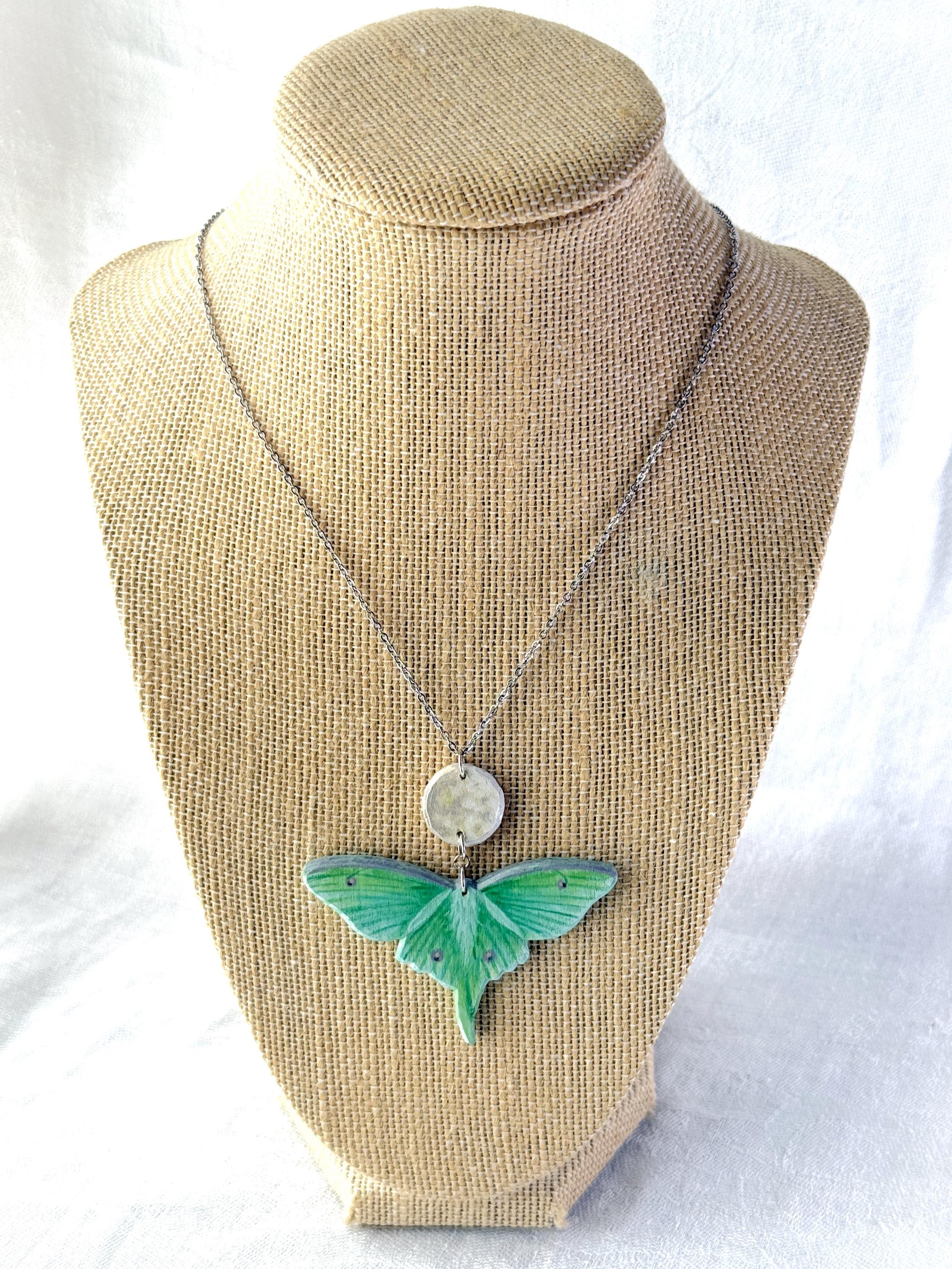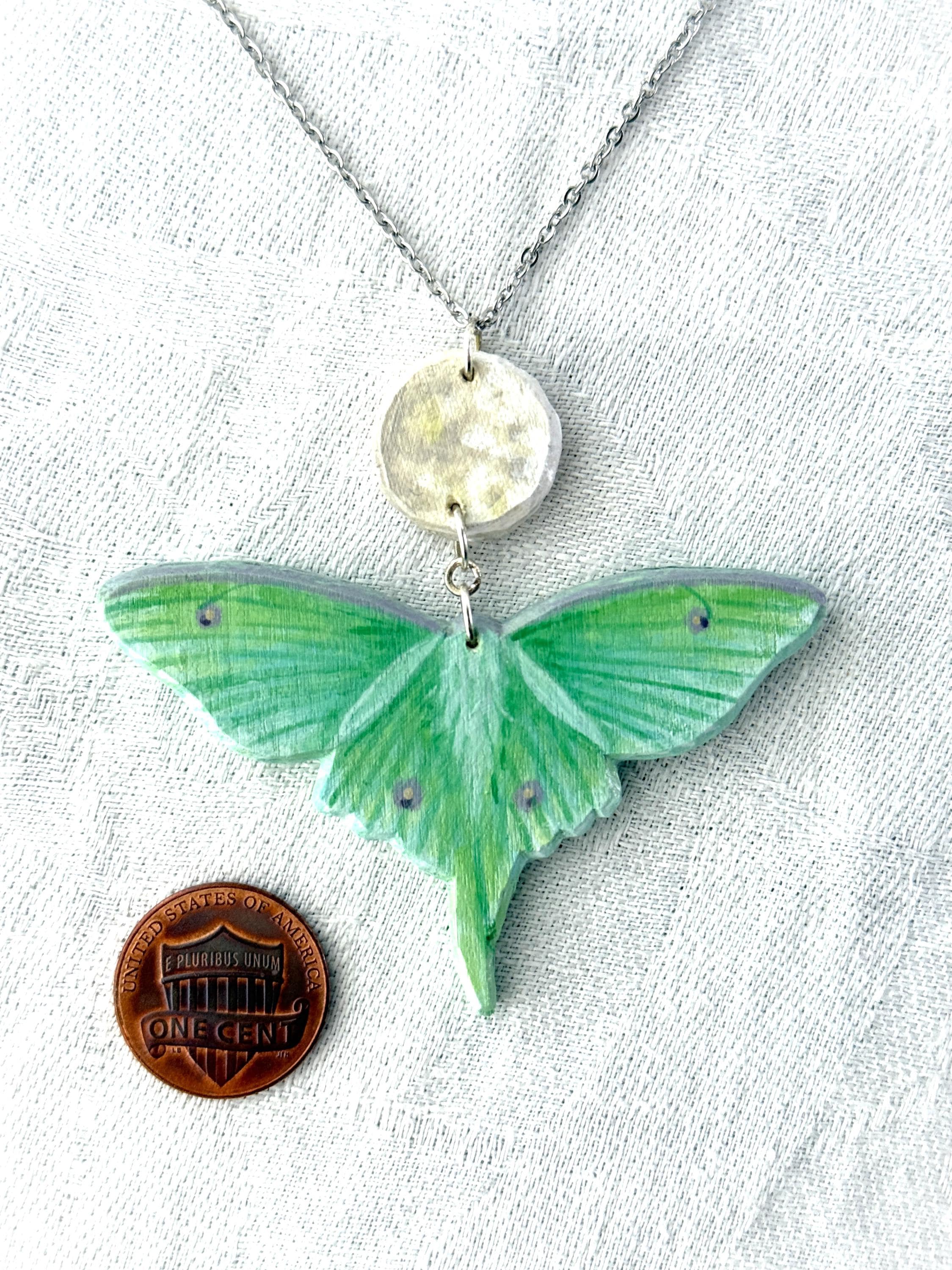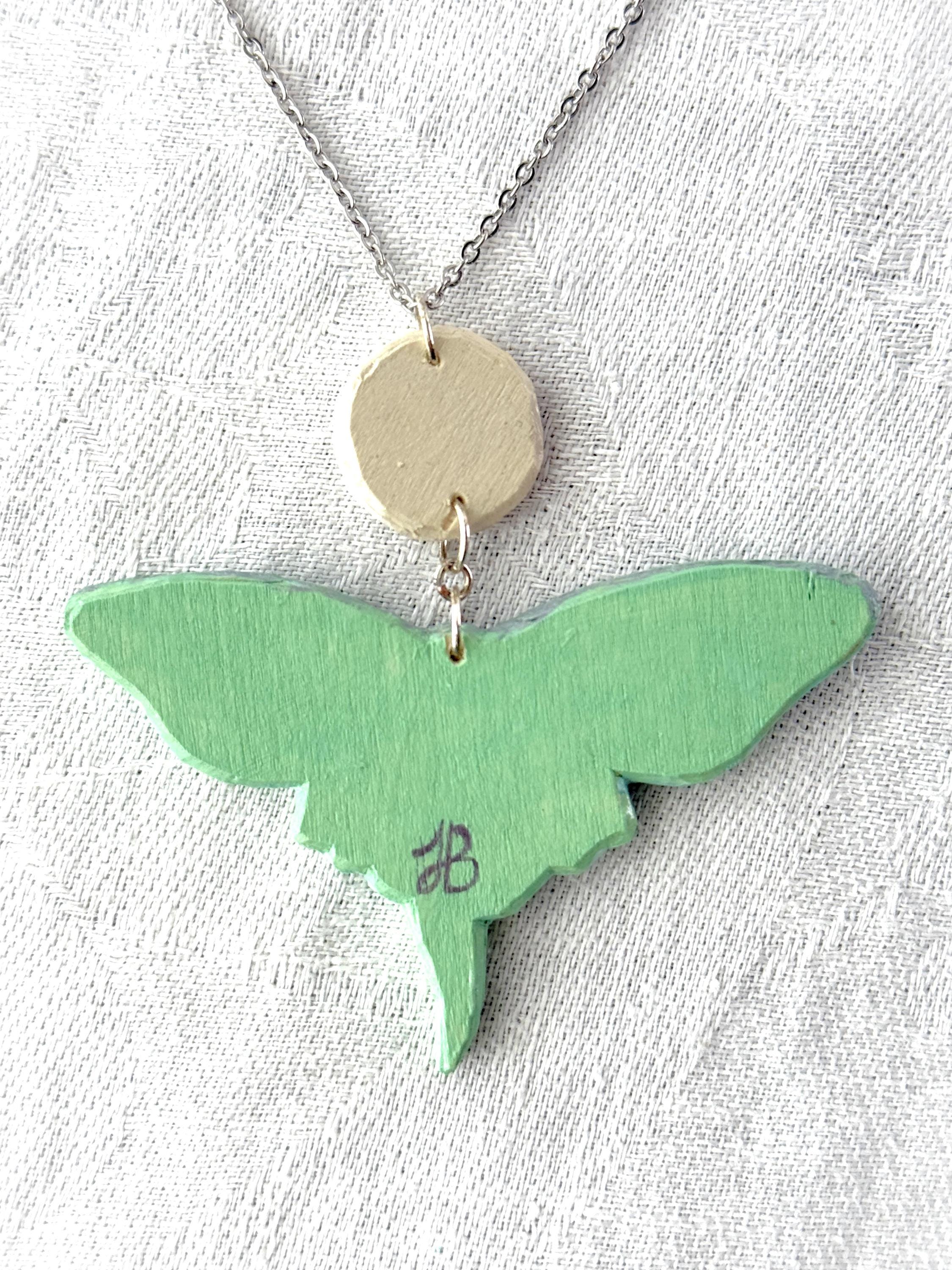 This original handcrafted necklace was carved and painted by hand in my studio and the piece you see in the photos is the exact one you will receive. They are made using acrylic paint on balsa wood with a stainless steel necklace chain for sensitive skin. Orders ship within 1-2 business days with tracking using USPS Ground Advantage Shipping.