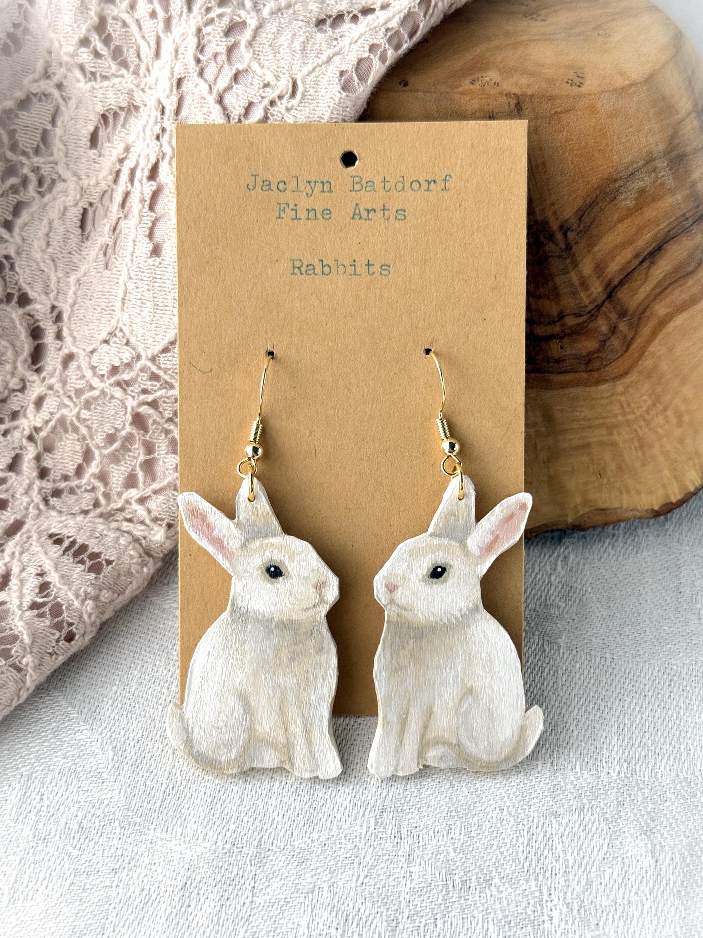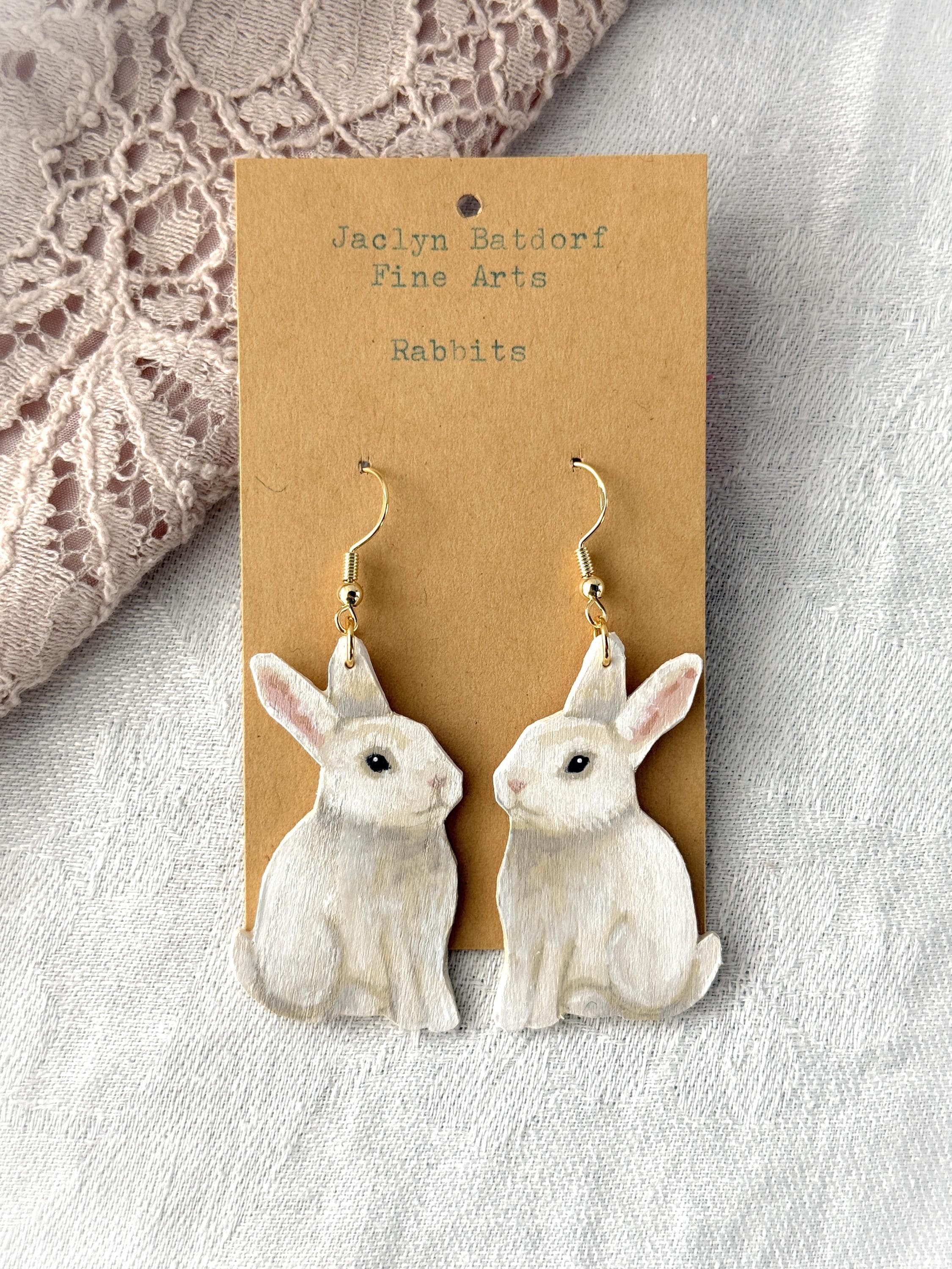 These original handcrafted earrings are carved and painted by hand in my studio and the pair you see in the photos is the exact one you will receive. They are made using acrylic paint on lightweight balsa wood with sterling silver hooks for sensitive ears (the gold hooks are gold plated sterling silver). Orders ship within 1-2 business days with tracking using USPS Ground Advantage Shipping.