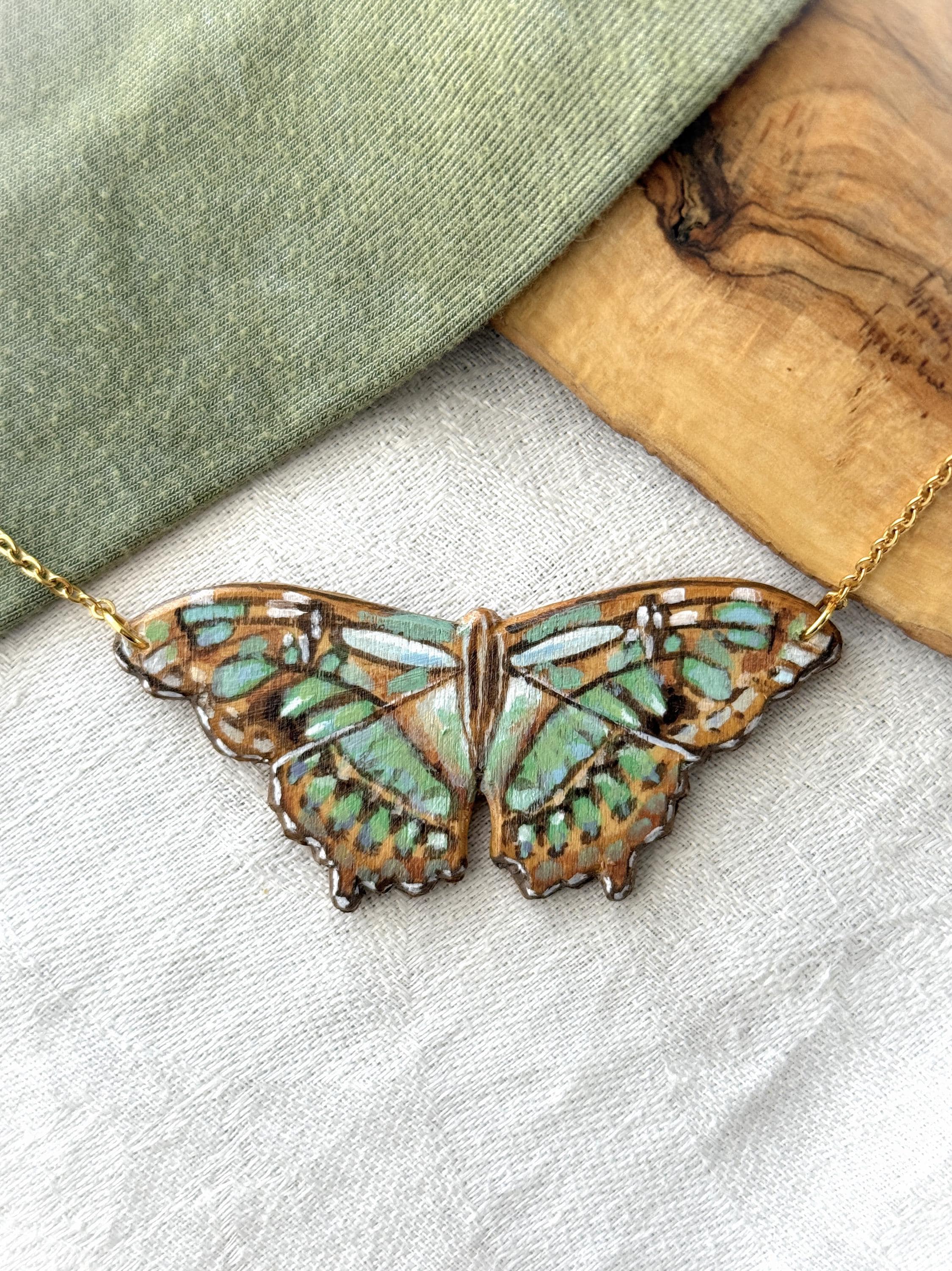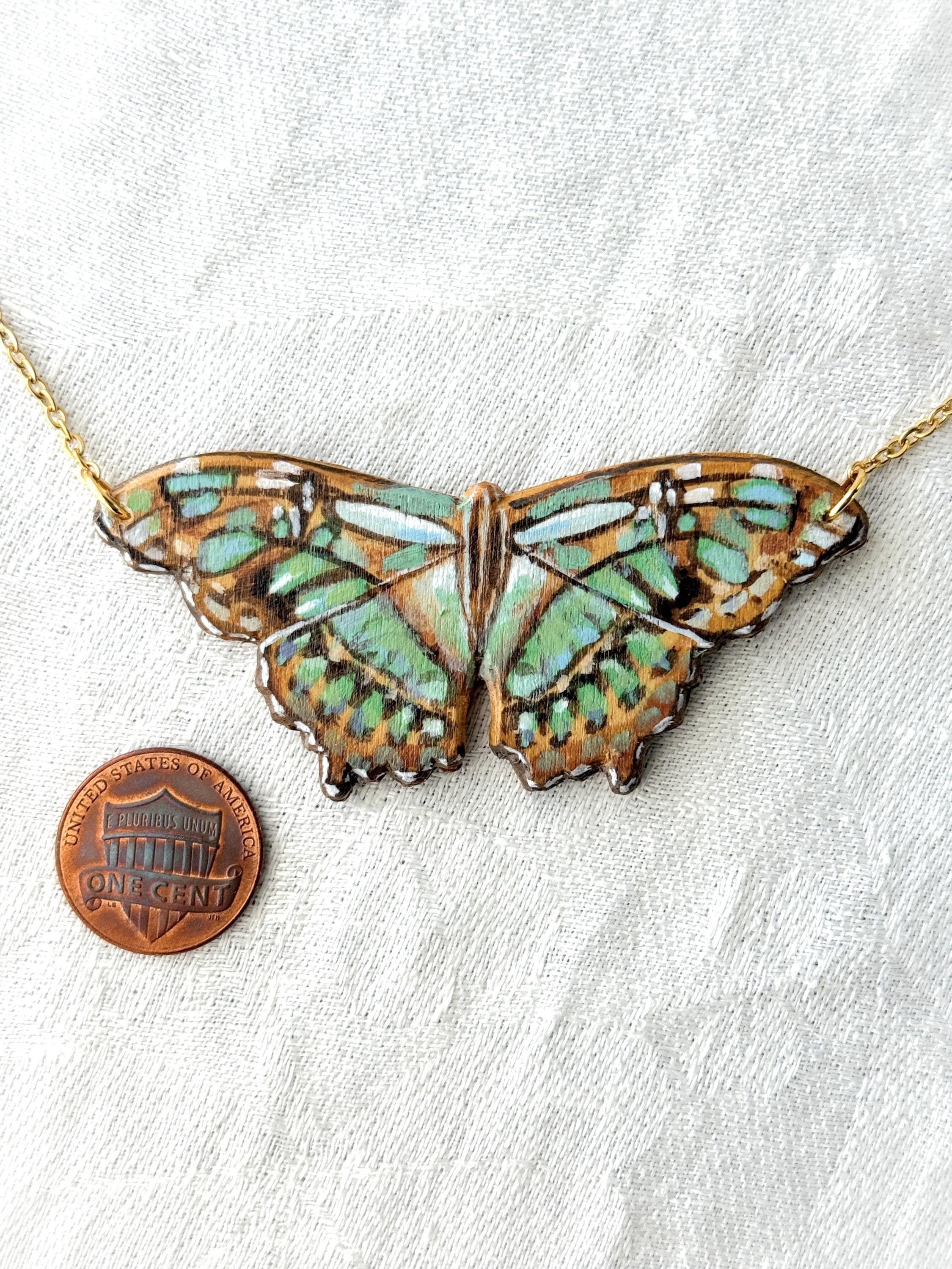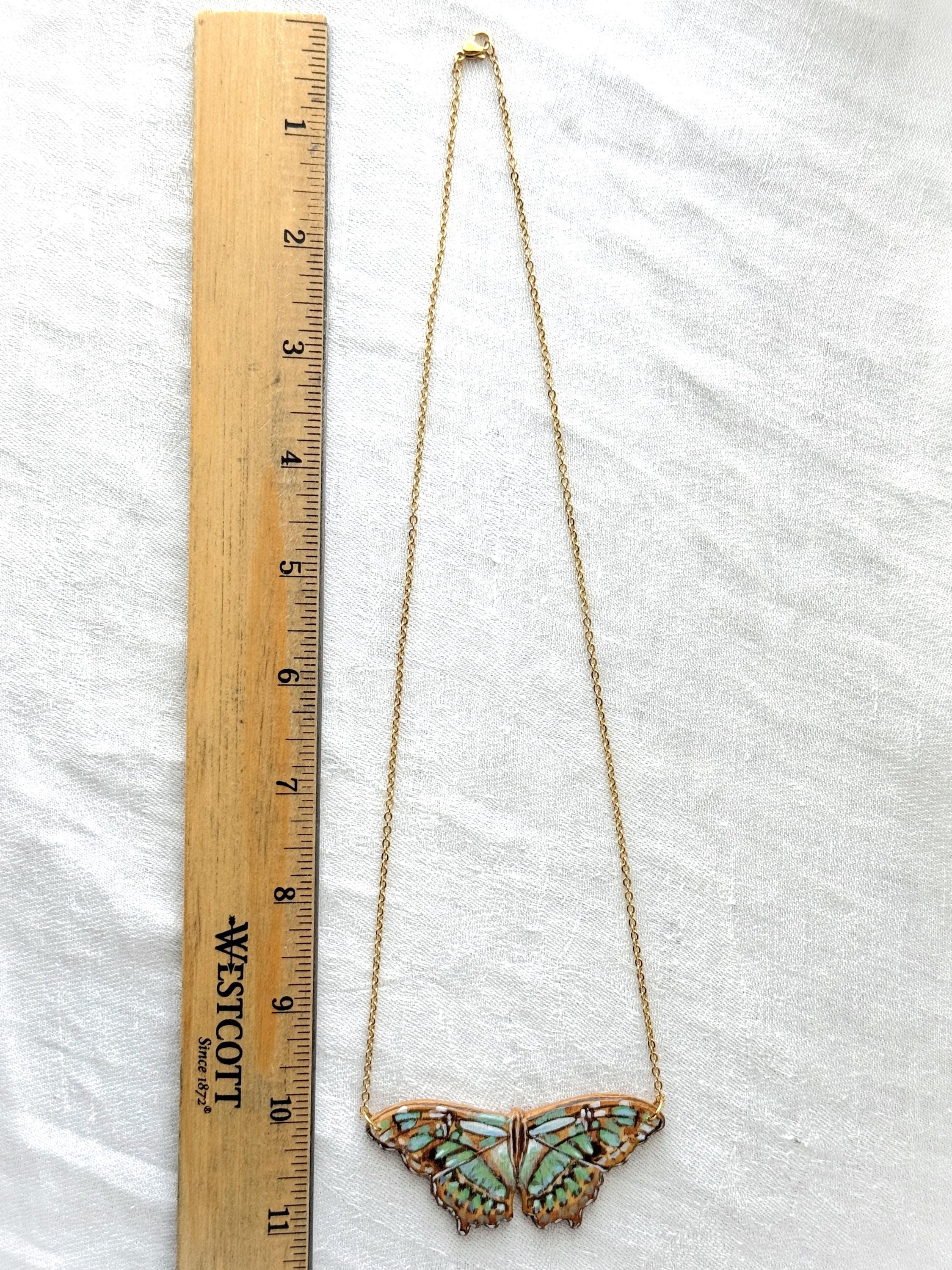 This is my second butterfly necklace from this artist. The colors and detail on this pendant are beautiful. This necklace will enhance many of my knit tops and dresses.