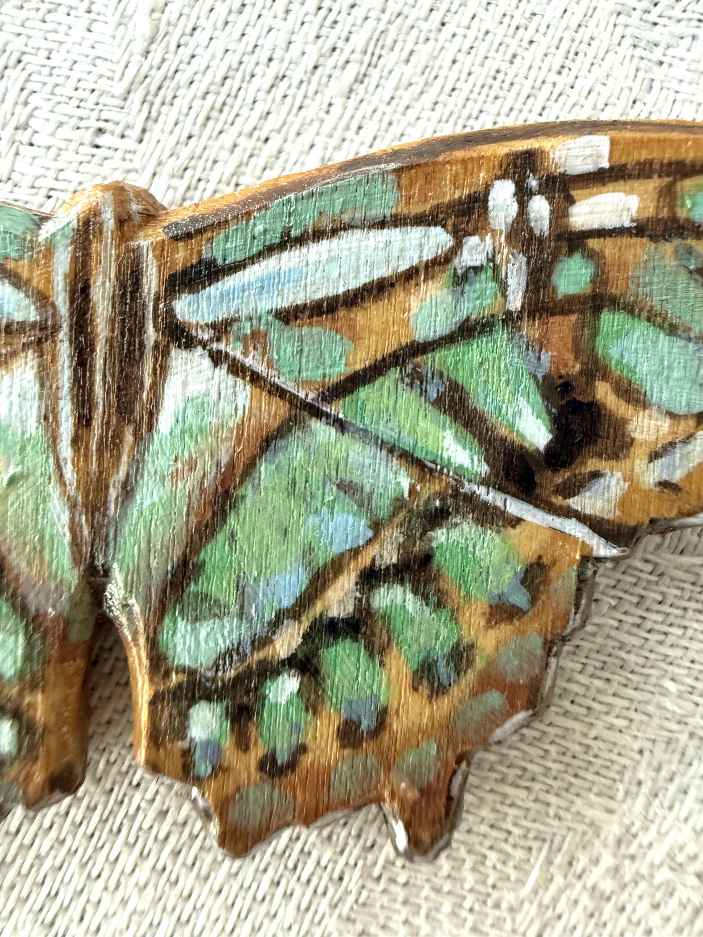 This original handcrafted necklace was carved and painted by hand in my studio and the piece you see in the photos is the exact one you will receive. They are made using acrylic paint on balsa wood with a stainless steel necklace chain for sensitive skin. Orders ship within 1-2 business days with tracking using USPS Ground Advantage Shipping.